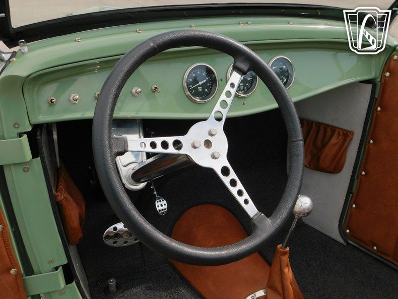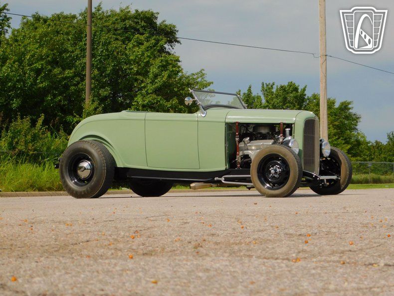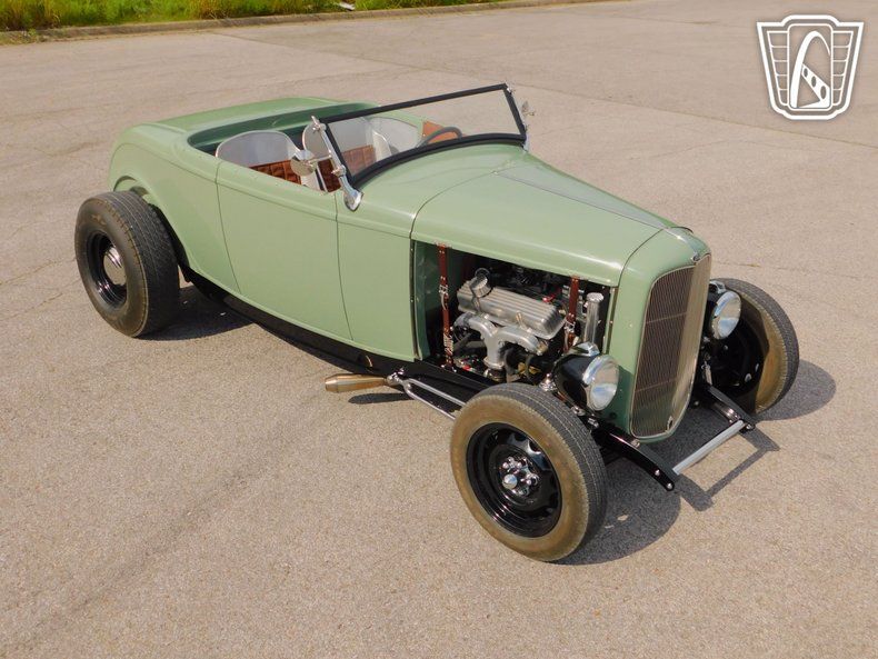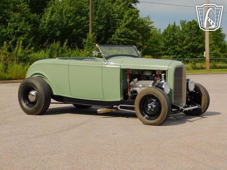 Gateway Classic Cars of Tulsa is proud to represent this clean 1932 Ford Hot Rod - Hi-Boy, a classic embodiment of style and performance. This remarkable vehicle boasts a striking light green exterior on a fiberglass body that captures the essence of vintage charm while turning heads wherever it goes. The bold color choice is complemented by a sophisticated brown interior, along with the retro aluminum inside, creating a harmonious blend of classic and contemporary aesthetics.