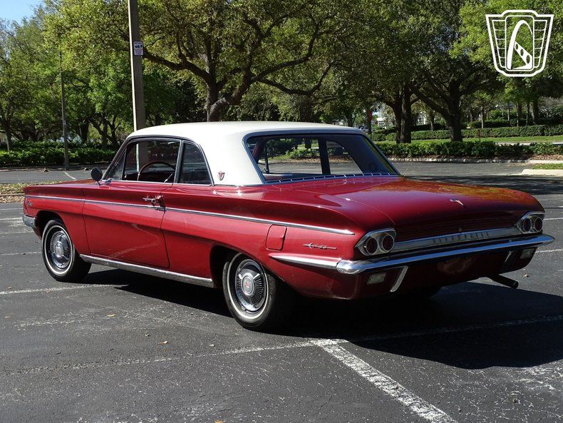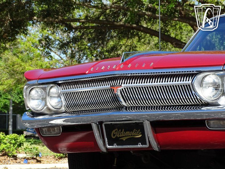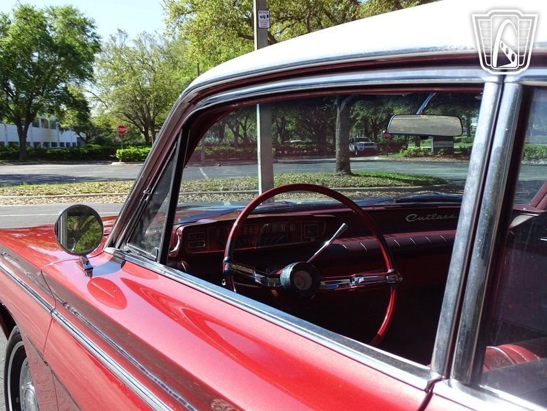 Gateway Classic Cars of Orlando is proud to present this charming 1962 Oldsmobile Cutlass. Oldsmobile had won a reputation for itself at General Motors by leading the way in engineering breakthroughs, such as Hydra-Matric automatic transmission, first seen on the 1940 models, and the modern high compression Rocket ohv V-8 engine that debuted in 1949. Debuting for 1961 the F-85 Cutlass was marketed as one of GM's upscale "senior" compacts. Related to the Buick Special and Pontiac Tempest, it was built on a highly innovative for its day unibody frame. This 62 hardtop is quite a looker dressed in a stunning shade of red with white roof. As you walk around the vehicle youll notice nice details like the front end bright work and intact trim pieces. Take a seat inside and youre greeted to a spacious and well appointed cabin. Eye catching red vinyl really makes the interior pop and the gauges are set up well for driving. Under the hood is Oldsmobiles all-aluminum, 215 cubic inch "Rockette" V-8. Boasting a hearty 185hp and spinning with a compression ratio of 10.25:1 this was one advanced engine for the time. Backed by Oldsmobile's 3-speed hydromantic transmission imagine how this car can get up and go! According to the owner this vehicle went through a restoration in the late 90s and has received recent mechanical attention to the carburetor, motor mounts and more. According to the owner the Air filter is adorned with the autographs of Hollywood stars Henry Winkler and John Schneider! If youre looking for a well taken care of Oldsmobile this is the one you want to own! Options include AM radio, power steering, radial tires, rally wheels and vinyl interior.