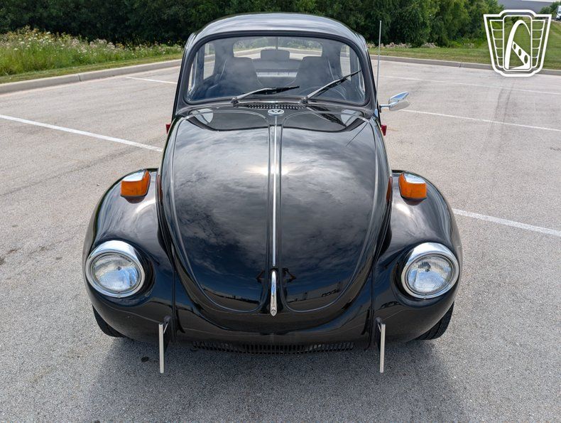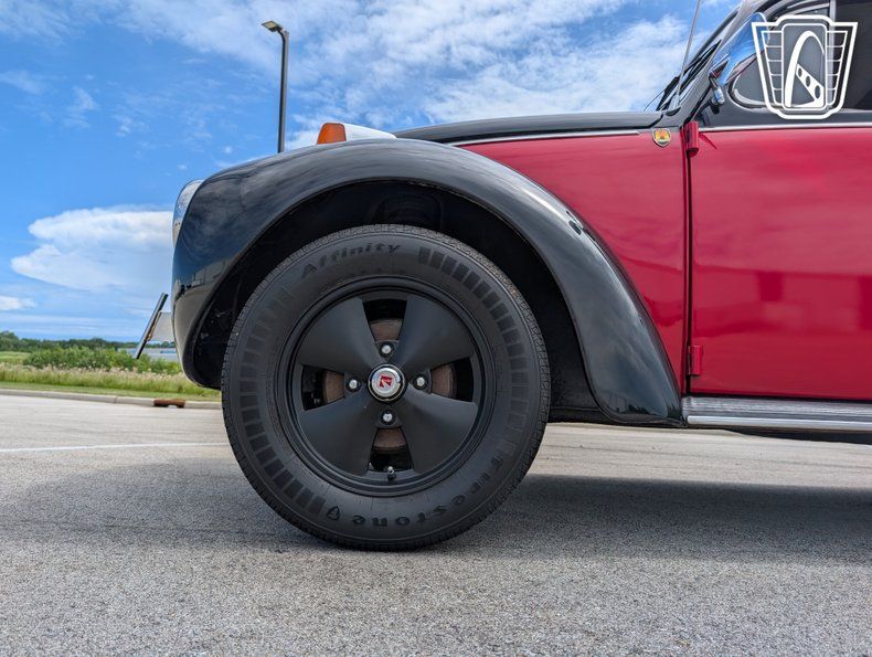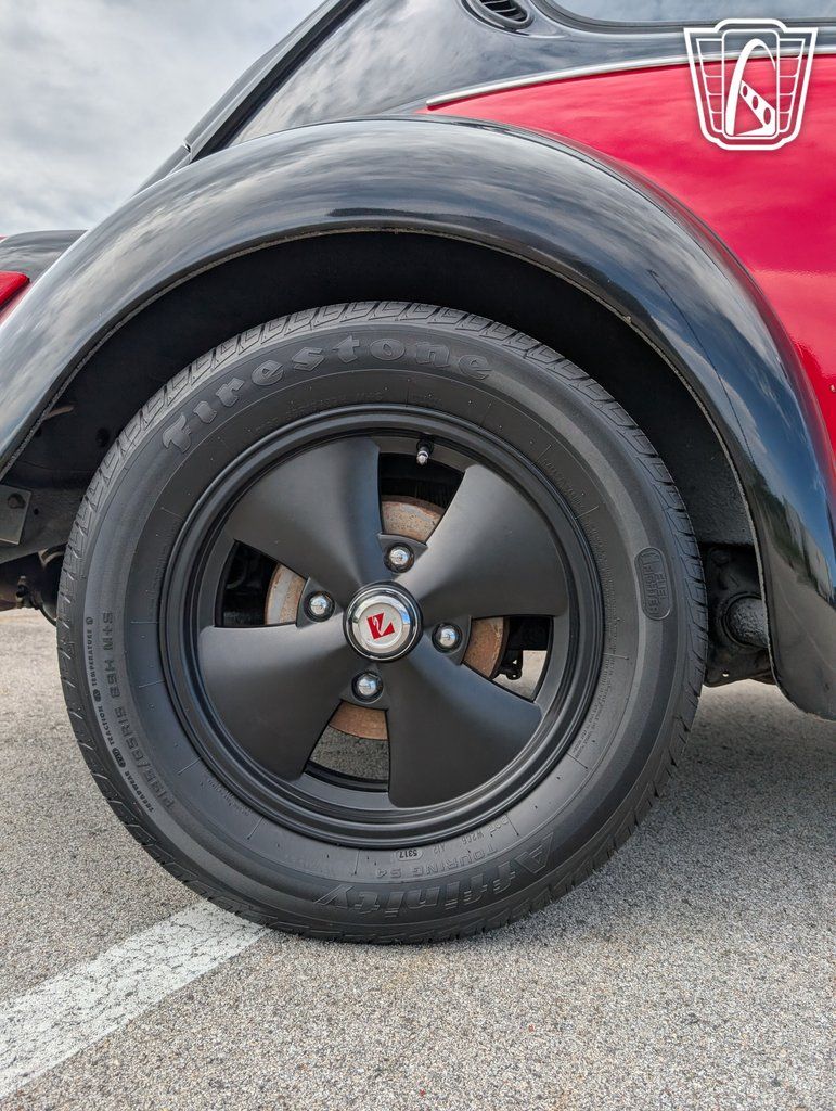 The Beetle's exterior is complemented by sleek aluminum wheels, adding a touch of modern flair to its classic silhouette. Equipped with radial tires, this vehicle ensures a smooth and stable ride, enhancing both comfort and performance. Inside, the black vinyl interior provides a clean and classic look, while the inclusion of seatbelts underscores a commitment to safety.