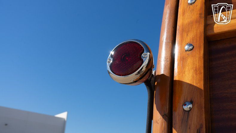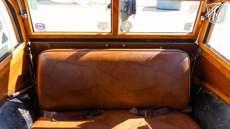 This particular Woody Wagon is equipped with features that enhance its drivability and comfort. Mustang II front clip suspension with tubular arm and coilover shocks, Power brakes and rack and pinion power steering ensure an effortless handling experience, while radial tires provide stability and a smooth ride. Safety is prioritized with the inclusion of seatbelts, an essential addition for peace of mind. The interior, finished in durable vinyl, offers both comfort and classic aesthetics, inviting you to enjoy every journey in style.