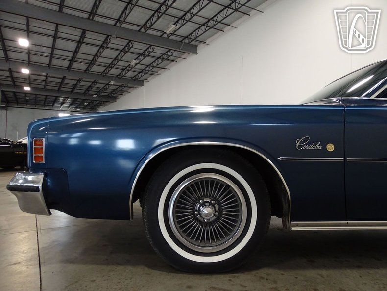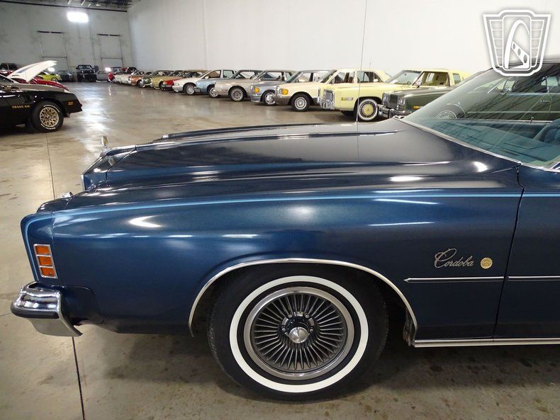 Gateway Classic Cars Milwaukee is proud to present this 1977 Chrysler Cordoba. The Cordoba was produced as a two-door mid-sized personal luxury car from 1975-1983. Distinctively recognized for its Argentinean coin hood ornament. The Cordoba was an instant success with over 150,000 units sold the first year. They became known for their over the top luxury including tufted button seats, simulated rosewood dash/door trim and plush carpeting. Other luxury features included vinyl landau roofs and wheel packages. The Cordoba stood apart from its competitors with its distinctive front end. Which led it to being one of the most distinguishable cars of its time. This one-owner 1977 Chrysler Cordoba is Cadet Blue Metallic. A contrasting light blue velour interior and matching landau vinyl roof w/ opera lights make for an elegant color combination. 50/50/ front seats with center armrest, rich trim and thick carpet are luxury features which made the Cordoba famous. Under the hood is a 400ci V-8 attached to a three-speed automatic transmission. Added features are air conditioning, AM/FM radio, cruise control, power steering and power brakes. Dont miss out on owning a piece of Chrysler history with this 1977 Cordoba. Truly an outstanding car of unique design and luxury that is destined to become a true classic.