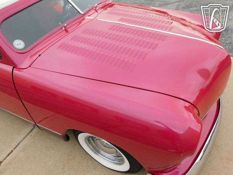 To give a little history; This 1950 Ford Deluxe / Super Deluxe was customized in Huntington Beach California where it was purchased by the current owner in 1985. The top is a true California "Carson" lift off top which features a custom headliner displaying the iconic Wurlitzer 1015 "Bubbler Jukebox" that lights up. The interior color scheme is just as impressive as the exterior and contains two-tone 60/40 split power seats.