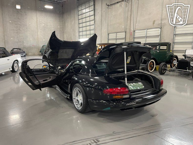 Gateway Classic Cars of San Antonio/Austin is excited to present this 1994 Dodge Viper featured in the classic Viper black over grey leather. The 1994 Viper was pure American muscle and unlike any other roadster of its time. It's very aggressive looking; packing a roaring 8.0-liter V10 engine with a T-56 6-speed manual transmission, it's loud, it's raw, handles like an IndyCar and really is the package deal! The look of the crossover tubes on the red intake manifold and the Viper engraved valve covers are a great touch. This Viper is packing 400 HP and was truly the fastest American sports car offered on the market for its time. The RT/10 is equipped with power-assisted rack-and-pinion steering, four-wheel independent suspension, a limited-slip differential, an AutoForm body-color hardtop and windows, four-wheel vented disc brakes with Viper-branded calipers up front. The 17 5-spoke alloy wheels are wrapped in Michelin Pilot Sport tires, 285/40s in the front and 335/35s in the rear. The three-spoke leather-wrapped steering wheel frames a 180-mph speedometer and a tachometer with a 6k-rpm red line. Auxiliary gauges for coolant temperature, oil pressure, fuel level, and voltage are mounted atop the center stack. The six-digit odometer shows just over 81k miles. Given the styling, outrageous performance and value, these halo cars truly are an affordable classic, and one of the purest supercars you're ever likely to own.