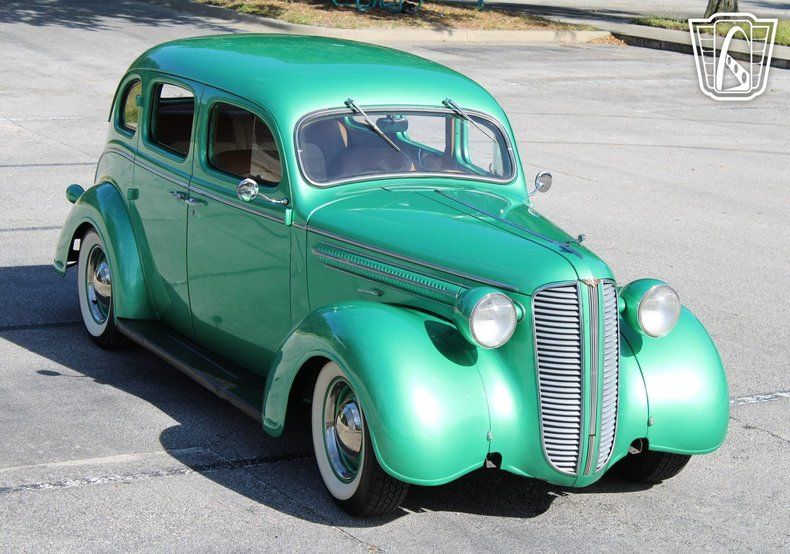 Introducing a classic piece of automotive history, the 1937 Dodge Touring Sedan, in a striking green exterior that captures the essence of its era. This vintage beauty is not just a feast for the eyes but also a testament to the timeless design and engineering prowess of the late 1930s. Complementing its vibrant exterior is a tasteful tan interior, offering a warm and inviting atmosphere that enhances every journey.