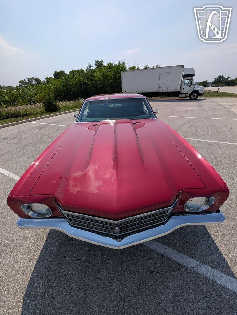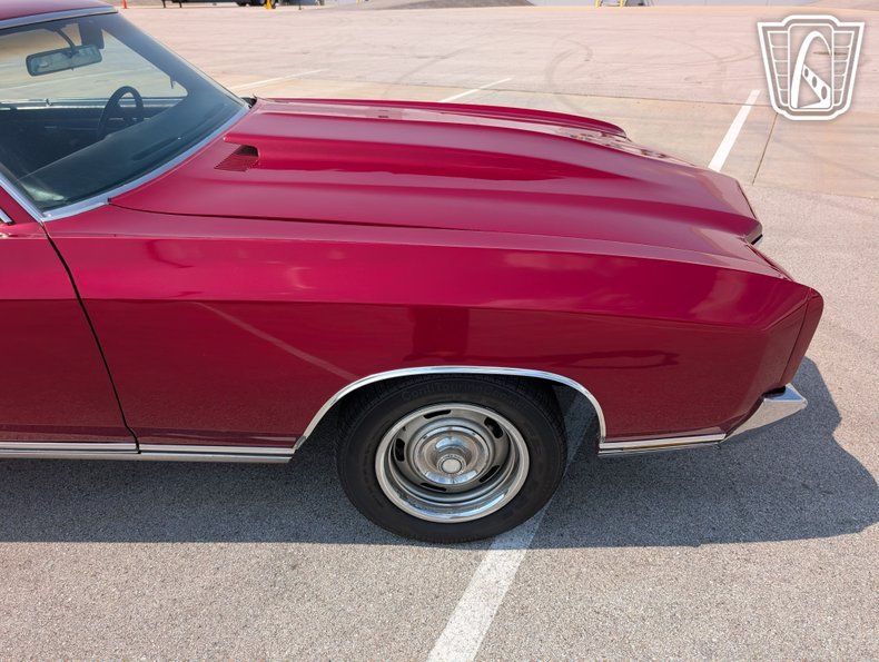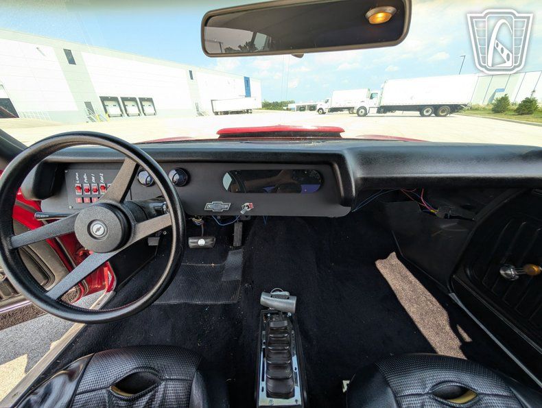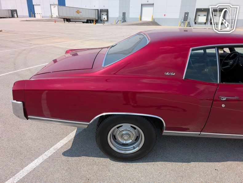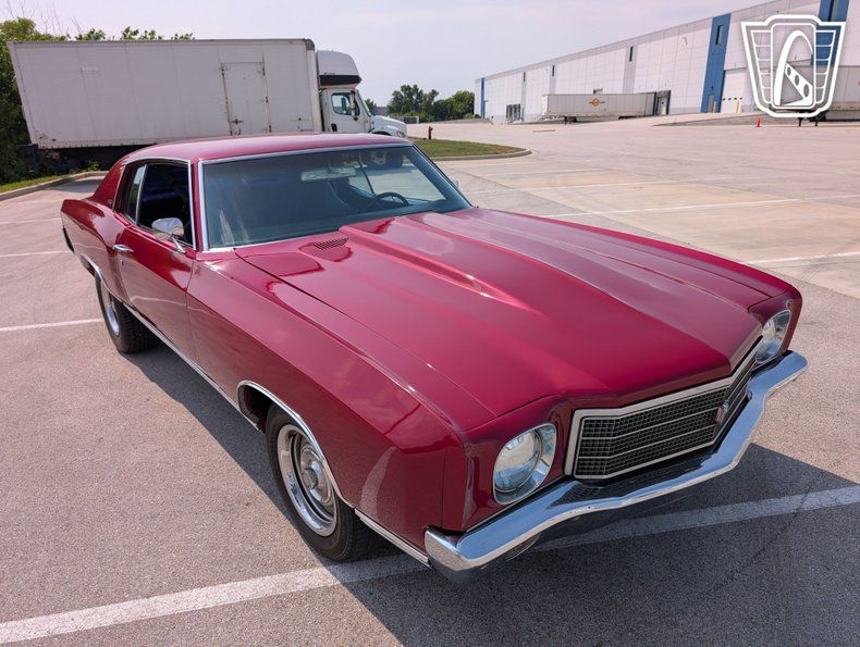 Introducing a classic icon of American automotive history, the 1970 Chevrolet Monte Carlo, a vehicle that embodies the spirit of the muscle car era with its bold design and powerful performance. This particular model stands out with its striking red exterior, a color that not only captures attention but also highlights the sleek lines and timeless elegance of the Monte Carlo's design. Paired with a sophisticated black interior, this car offers a visually appealing contrast that enhances its overall allure.
