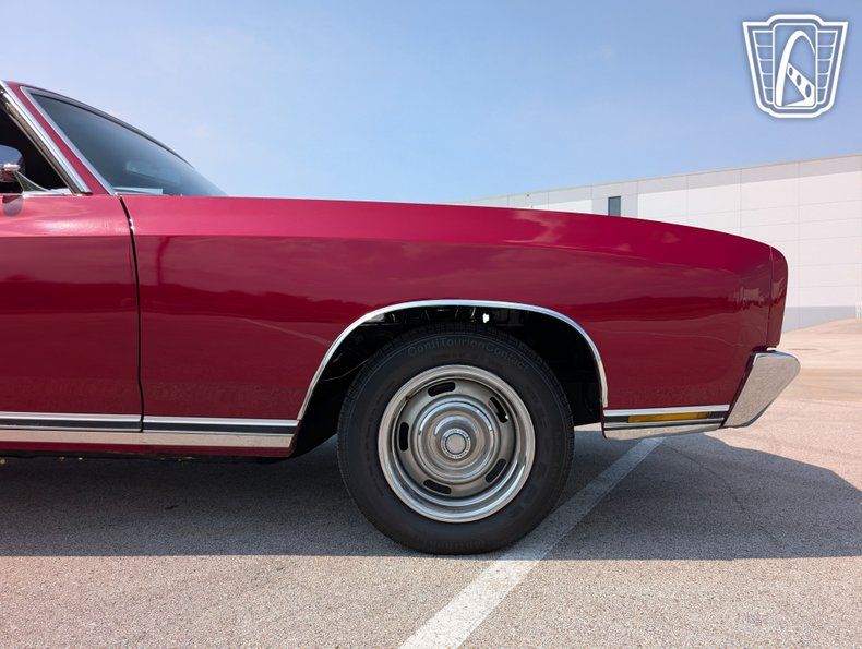 The vehicle is fitted with radial tires, which offer improved handling and stability, making it well-suited for both leisurely drives and more spirited journeys. The rally wheels add a touch of sportiness to the car's appearance, further enhancing its classic muscle car aesthetic. Inside, the Monte Carlo features a vinyl interior that not only provides comfort but also adds to the car's vintage charm. The inclusion of seatbelts underscores a commitment to safety, ensuring peace of mind for both driver and passengers.