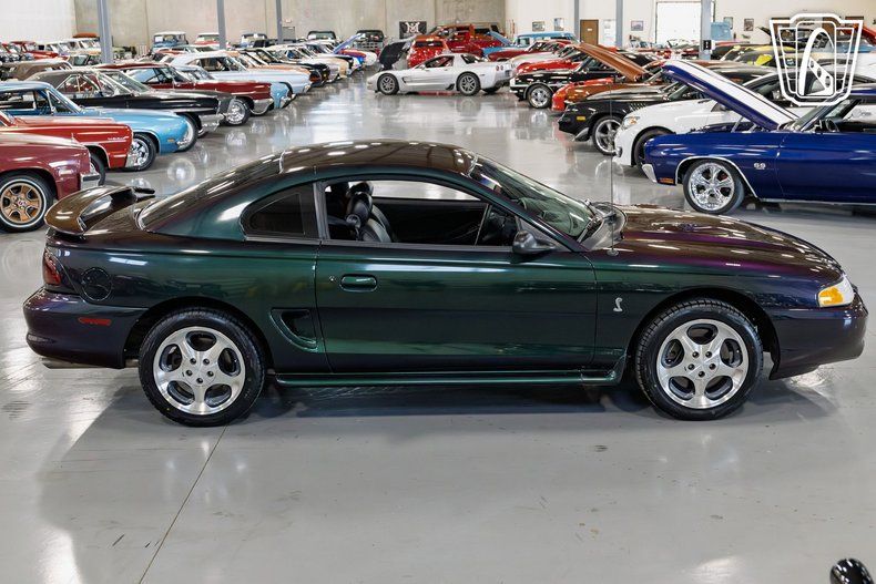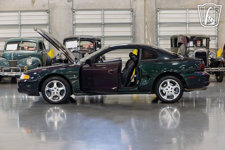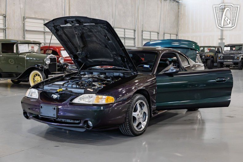 Gateway Classic Cars of San Antonio/Austin is proud to present this 1996 Ford Mustang SVT Cobra with a rare mystic exterior color. This exceptional vehicle is a testament to the iconic design and engineering prowess of the Ford Mustang lineage. According to the original owner, this car is being offered with what they are claiming the mileage at 27,486, which they say helps maintain its authenticity and preserve its legacy. Under the hood, you'll find a robust 4.6 Liter V8 engine paired with a 5-speed manual transmission, delivering the exhilarating performance that the SVT Cobra is renowned for. This combination promises a driving experience that is both powerful and engaging, making every journey a memorable one. The interior of this Mustang SVT Cobra is equally impressive, featuring a black cloth interior that complements its mystic exterior. The cabin is equipped with a range of features designed to enhance comfort and convenience, including air conditioning, power seats, and power windows. The inclusion of power locks, power steering, and power brakes further adds to the ease of handling and driving pleasure. Entertainment options are plentiful, with an AM/FM radio, cassette tape player, and CD player, ensuring that you can enjoy your favorite tunes while cruising down the road. Safety is also a priority, with a driver airbag, seatbelts, and a tilt steering wheel providing peace of mind for both driver and passengers. The exterior is adorned with stylish aluminum wheels and radial tires, enhancing both the aesthetic appeal and performance of the vehicle. This Mustang SVT Cobra is a rare find, offering a blend of classic design, powerful performance, and modern features that make it a standout choice for those seeking a piece of automotive history. Don't miss the chance to own this remarkable vehicle that embodies the spirit of the Mustang legacy.