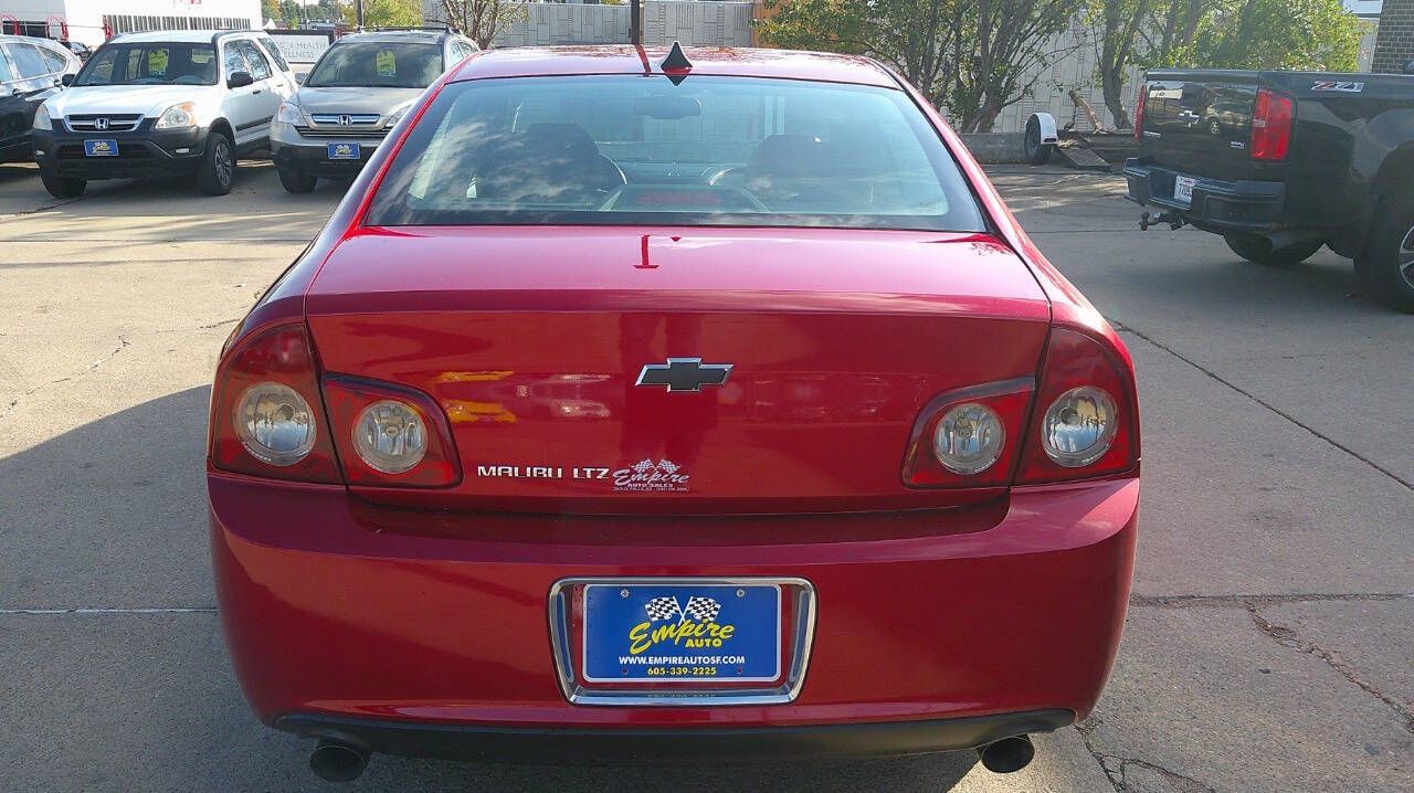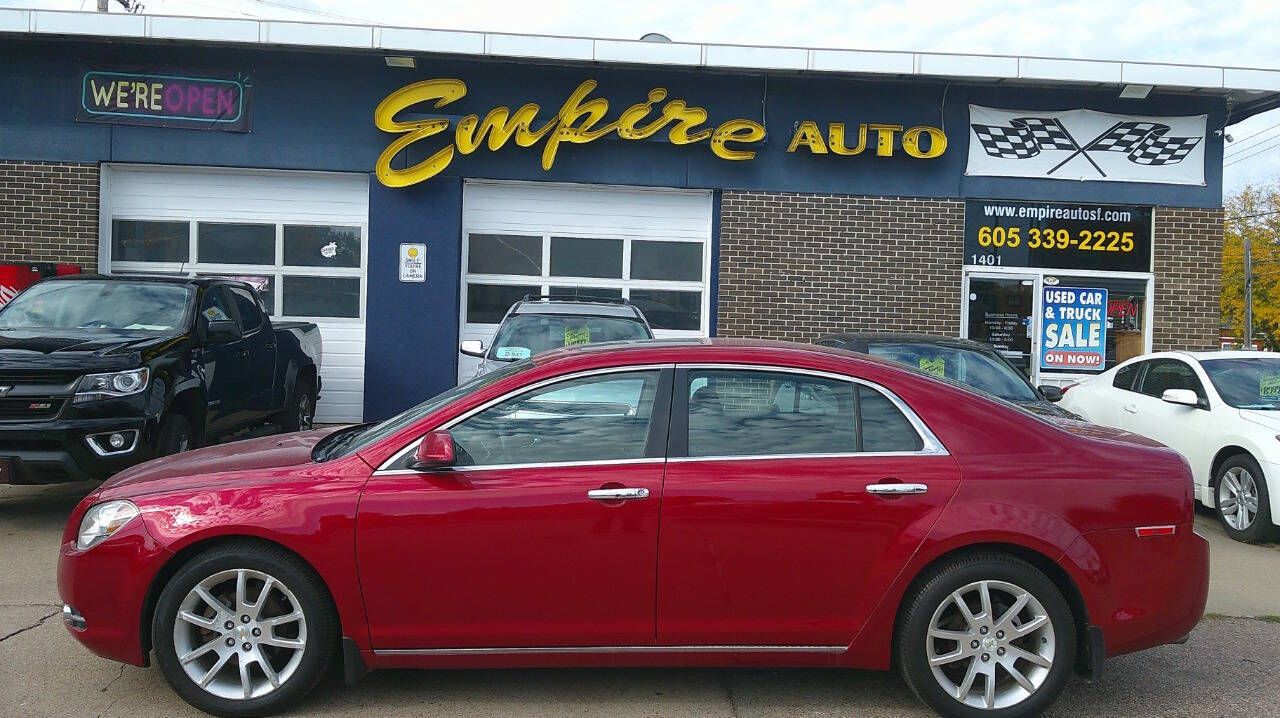 Loaded with options on this LTZ Malibu. Come over and look for yourself. Runs and drives excellently. 90 day warranty, and the service work is done too. The front windshield is in excellent condition. The paint is in great shape and condition dings are visible on this vehicle. The tires are slightly worn with about 75% of tread life left. The interior was well maintained and is extra clean. The exterior was well-maintained and is extra clean. The engine is functioning properly and has no issues. The transmission shifts very smoothly. The brakes are in great condition. The battery is in excellent condition. The car was previously owned by a non-smoker. A full size spare is included with this vehicle. 2 owner car, so be an Empire buyer today! empireautosf.com 605 339-2225