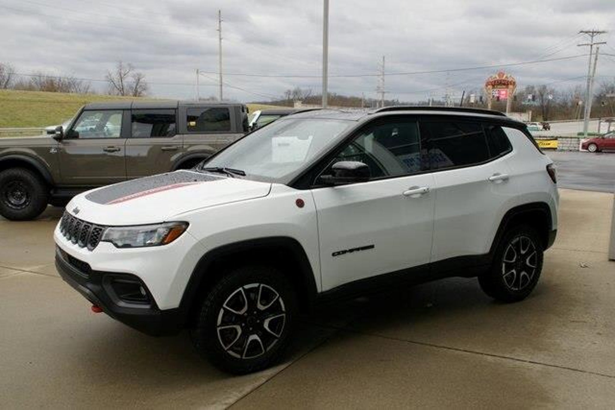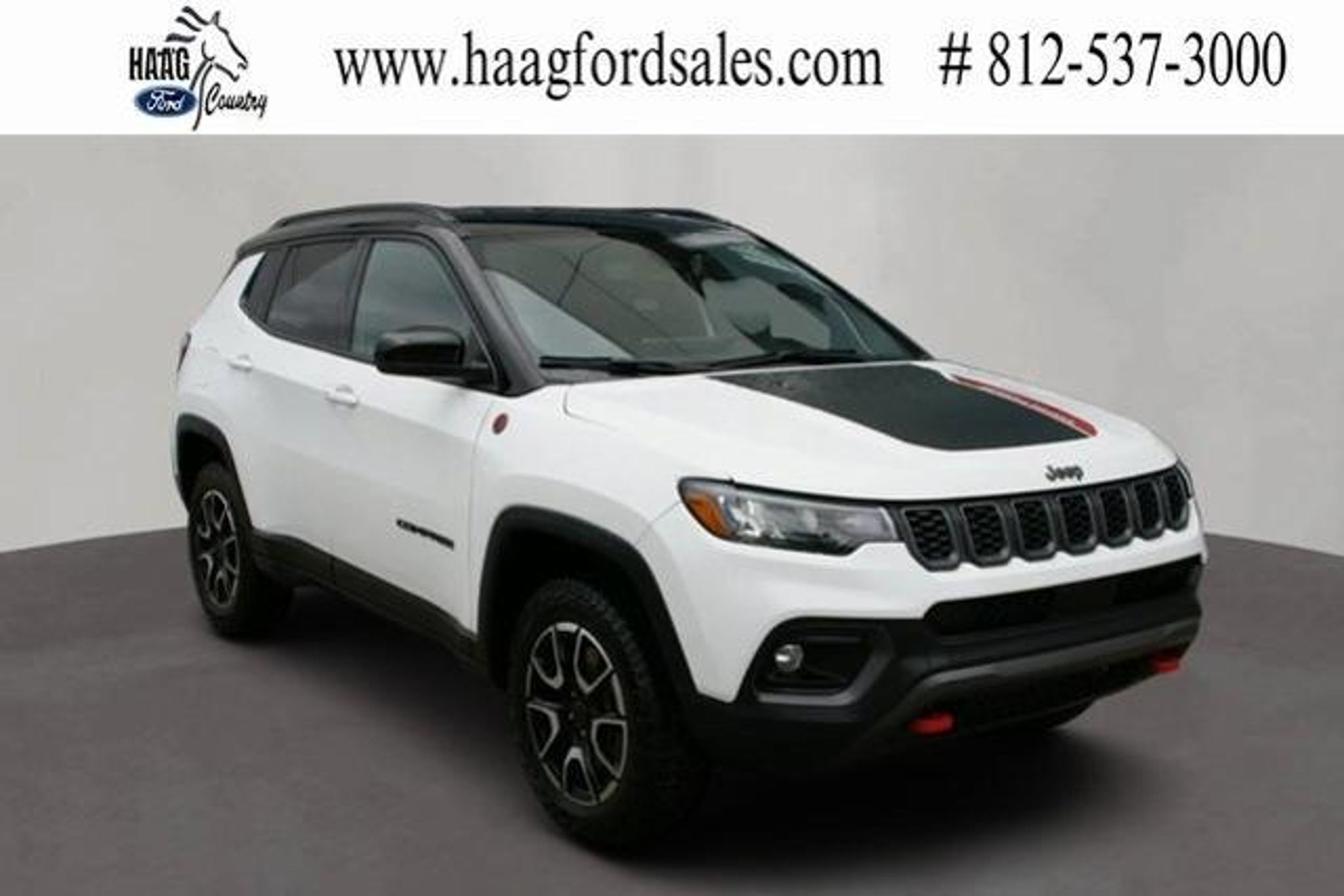 Compass Trailhawk, 2.0L I4 DOHC, 4WD. Recent Arrival! CARFAX One-Owner. Odometer is 16597 miles below market average! Bright White Clearcoat 2025 Jeep Compass 4D Sport Utility Trailhawk 2.0L I4 DOHC 8-Speed Automatic 4WD Used Cars from Haag Ford is the solution to your Used Car buying experience! Haag Ford is within 20 miles from 47025, 47001, 47022, 45030, 45002, 45248, 45233, 41048, 41005, 41080, 45052, 47060, 47040, 45247, and 41091. Our sales department offers trucks, vans, suv's and cars that offer AWD / FWD, 2nd row seating, 3rd row seating, cruise control, dual power seats, Bluetooth, Sync, Back-up Camera, Heated and Cooled seats, leather and cloth seating, power moonroof, Sunroof, Panoramic Vista Roof, New tires, New Brakes, Non-Smoker interior, 30 MPG, One Owner Carfax, Premium Wheels, Premium Sound System, Trailer Hitch, Navigation, Rear Backup Sensors, Rear Bucket Seats, Leather Seats, DVD Player, Entertainment System, Remainder of Factory Warranty, Remote Keyless Entry, Remote Start, Service Records Available, Steering Wheel Controls, Tow Package, Traction Control, USB Ports, XM Radio, Sirius, and a wide variety of other options. We offer numerous color options including Black, White, Red, Blue, Green, Tan, Silver, Gray, Beige, Off White, Brown, Orange, Charcoal and Gold. Pricing reflects all discounts and applicable factory rebates. Print out of vehicle must be present in order to receive the internet price, HELP US HELP YOU!!!!We are not responsible for errors in our postings including but not limited to pricing, descriptions and photos. We reserve the right to correct any errors. Prices do not include tax and $235 Document fee. ** A qualified trade is defined as a trade-in in good condition that is less than 5 years old and has less than 80,000 miles. Online pricing does not include tax and $235 doc fee. Haag Ford is your source for new Ford and pre-owned vehicles near Cincinnati, OH, northern Kentucky and southeastern Indiana. Haag Ford offers used vehicles from most major manufacturers including Ford, Lincoln, Chevrolet, Dodge, RAM, GMC, Jeep, Toyota, Nissan, etc. Our vehicles vary in drivetrain from all wheel drive (AWD) and four wheel drive (4WD) to front wheel drive and rear wheel drive with automatic, manual, automated manual and cvt transmissions and come in body styles like convertible, coupe, hatchback, sedan, SUV and crossover, truck, pickup truck, van, cargo van, minivan and wagon varying between two door, four door, 5 door, crew cab, extended cab and regular cab. Vehicles c