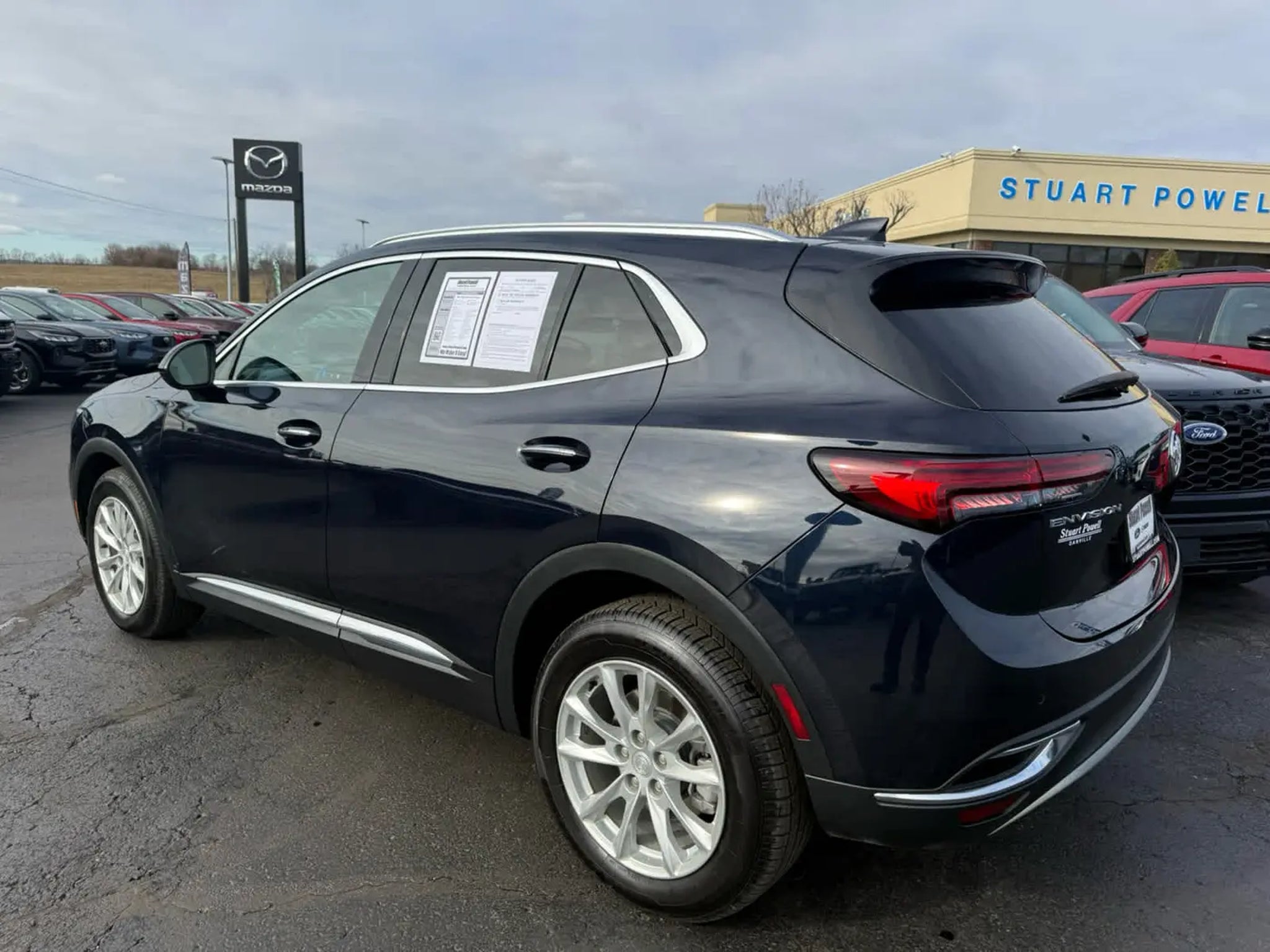 FUEL EFFICIENT 31 MPG Hwy/24 MPG City! Blind Spot Monitor, Lane Keeping Assist, WiFi Hotspot, Cross-Traffic Alert, Keyless Start, Aluminum Wheels, Back-Up Camera, COMFORT AND CONVENIENCE PACKAGE, TRANSMISSION, 9-SPEED AUTOMATIC KEY FEATURES INCLUDE Back-Up Camera, Onboard Communications System, Aluminum Wheels, Keyless Start, Cross-Traffic Alert, WiFi Hotspot, Lane Keeping Assist, Blind Spot Monitor. Keyless Entry, Privacy Glass, Electronic Stability Control, Heated Mirrors. Buick Preferred with Dark Moon Blue Metallic exterior and Ebony seats interior features a 4 Cylinder Engine with 228 HP at 5000 RPM*. OPTION PACKAGES includes (TC2) Hands-free power liftgate, (UVD) heated steering wheel, (KA1) heated driver and front passenger seats, (BTV) Remote vehicle starter system, (CJ2) dual-zone air conditioning, (KEM) Air Ionizer, (IOS) 10.2 diagonal Buick Infotainment System, (UQG) 7-speaker enhanced audio system with amplifier, (USK) air quality indicator and (UEC) automatic air quality indicator/sensor. (STD), includes multi-touch display, AM/FM/SiriusXM stereo, Bluetooth® streaming audio for music and most phones, Wireless Apple CarPlay®/Wireless Android Auto® for compatible phones, advanced voice recognition, in-vehicle apps, personalized profiles for infotainment and vehicle settings. AFFORDABLE Reduced from $23,900. This Envision is priced $200 below J.D. Power Retail. MORE ABOUT US We Make It Easy! Since 1949, Stuart Powell has earned a reputation for transparent pricing and making it easy to do business. Come see why its worth the drive to Danville for a better way to buy. Pricing analysis performed on 1/31/2026. Horsepower calculations based on trim engine configuration. Fuel economy calculations based on original manufacturer data for trim engine configuration. Please confirm the accuracy of the included equipment by calling us prior to purchase.