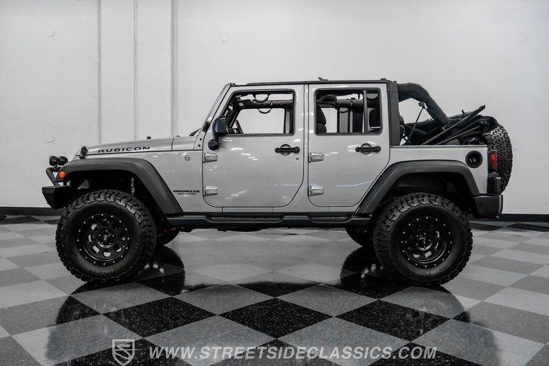 HIGHLIGHTS 3.6L V6 Warranty Replacement Engine With Only 42k Miles 6-Speed Manual Transmission Dana 44 Front and Rear Axles 3.5-Inch Lift with Fox Suspension 17-Inch Pro Comp Wheels 315/70R17 All-Terrain Tires Factory Billet Metallic Silver Paint Removable Factory Soft Top Aftermarket Front Bumper with Brush Guard 9500lb Barricade Winch Power Windows, Locks, And Mirrors Factory Alpine Audio System Air Conditioning and Cruise Control Maintenance Records and Window Sticker Included Financing Available Vehicle Protection Plans Available Worldwide Shipping
