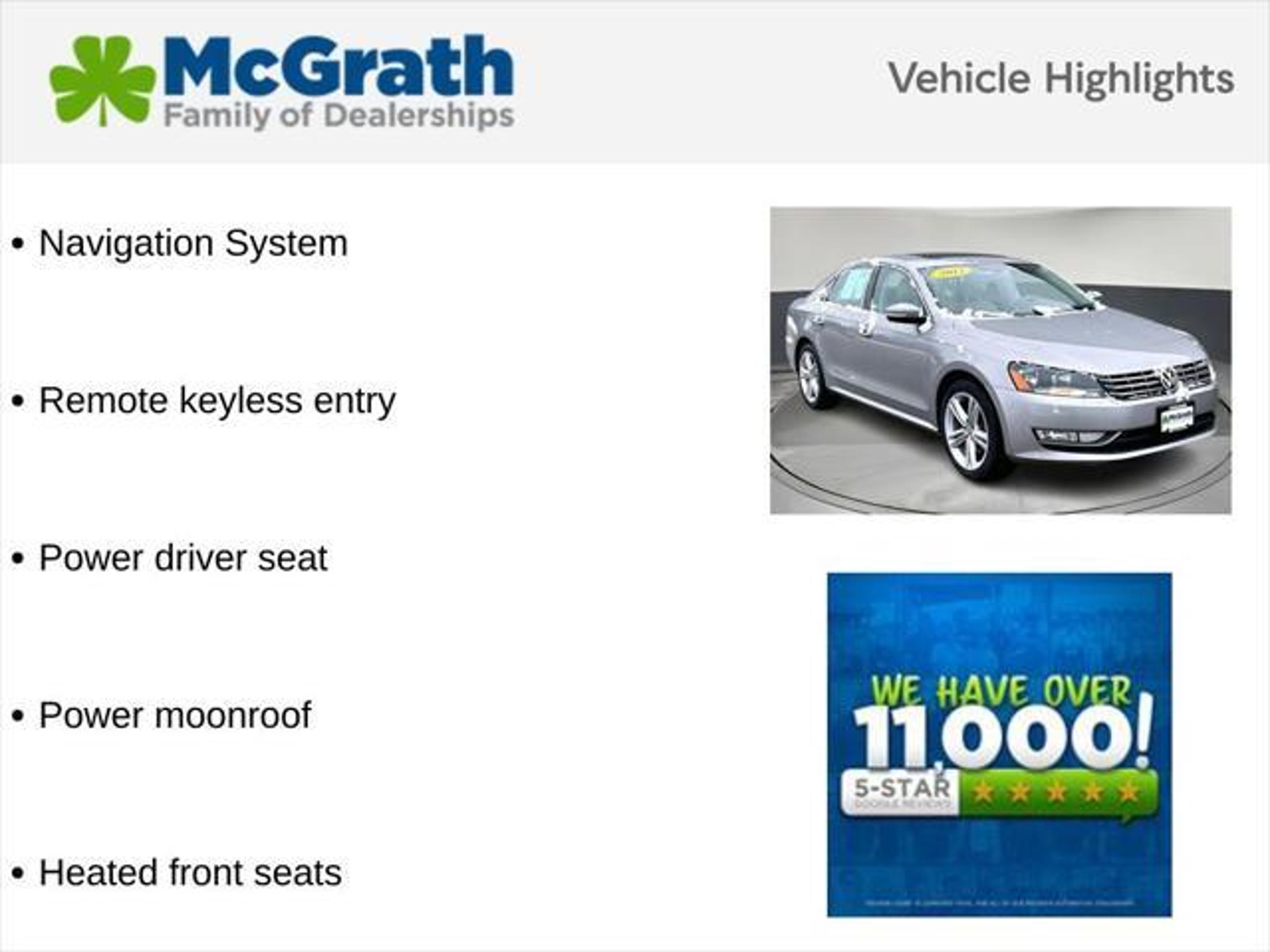 Details > 2013 Volkswagen Passat TDI SEL Premium 4DR Sedan 6A For Sale in Dubuque, IA Private Party Sellers Click here to place your ad now! You auta tell them you saw the ad in AutaBuy when you call or email. 1/31 2/31 3/31 4/31 5/31 6/31 7/31 8/31 9/31 10/31 11/31 12/31 13/31 14/31 15/31 16/31 17/31 18/31 19/31 20/31 21/31 22/31 23/31 24/31 25/31 26/31 27/31 28/31 29/31 30/31 31/31 View 31 Photos View All Add to My Garage Parked in Your Garage! Mcgrath Hyundai of Dubuque Contact Seller: I would like to: Make Offer Check Availability Ask A Question Request More Photos Check Financing Options Send a copy of this message to me Add this listing to my garage Send to Mobile Mileage 81,448 Exterior Color Platinum Gray Metallic Interior Color Titan Black Doors 4 Engine 2.0L I4 Transmission 6 Speed Auto Stock # H260151A VIN 1VWCN7A38DC003231 Estimated Monthly Payment $191 mo Apply Now J.J. Best Banc & Co. 2013 Volkswagen Passat TDI SEL Premium 4DR Sedan 6A Description: Mcgrath Hyundai Of Dubuque · Mileage: 81,448 · Color: Platinum Gray Metallic Price: $10,995. Price: $10,990. Mileage 81,448 Exterior Color Platinum Gray Metallic Interior Color Titan Black Doors 4 Engine 2.0L I4 Transmission 6 Speed Auto Stock # H260151A VIN 1VWCN7A38DC003231 Estimated Monthly Payment $191 mo Apply Now J.J. Best Banc & Co. Add to My Garage Parked in Your Garage! Message Seller Mcgrath Hyundai of Dubuque Contact Seller: I would like to: Make Offer Check Availability Ask A Question Request More Photos Check Financing Options Send a copy of this message to me Add this listing to my garage Offered for sale by Mcgrath Hyundai of Dubuque DUBUQUE, IA Price: $10,995. Price: $10,990. Offered for sale by Mcgrath Hyundai of Dubuque DUBUQUE, IA [entire inventory] Ask Auta Intelligence When was this model first introduced? Can you show me more cars for a similar price? How many of these were produced? What engine options did these come with? Tell me the history on this model What colors did these come in? How easy are parts to find for this model? What factory options were available on this model? How far is this from me? What trim levels were available for this model? What kind of mileage do these get? What transmission options did these offer? What does this VIN number tell me? Do you have a similar car to sell? List It Now! Questions about this car? Ask Auta Intelligence for production numbers, available options, etc. · Subscribe to AutaBuy! · Send a Gift Subscription Notice to a Friend
