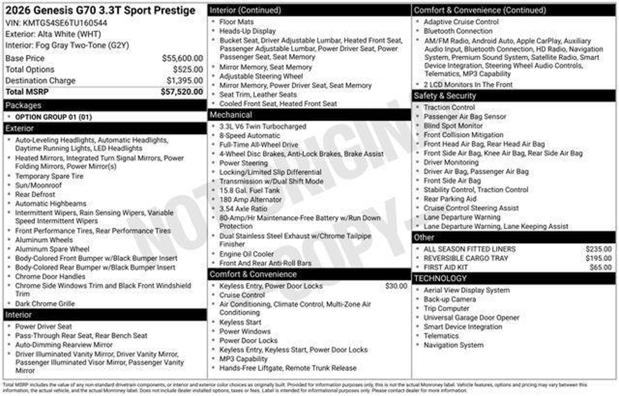 2026 Genesis G70 3.3T Sport Prestige 3.3T Sport Prestige 3.3L V6 DGI DOHC 24V 8-Speed Automatic AWD 4D Sedan Alta White Bought & Serviced at Fred Beans, Local Trade, Great Service History, Factory Certified Vehicle, Free First Oil Change, 5 Day Return / 30 Day Exchange, Auto Rewards Program, Android Auto & Apple CarPlay, Auto High-beam Headlights, Auto-dimming door mirrors, Exterior Parking Camera Rear, Front dual zone A/C, Heads-Up Display, Heated door mirrors, Heated front seats, Heated steering wheel, Illuminated entry, Leather Seating Surfaces, Leather steering wheel, Memory seat, Navigation System, Power door mirrors, Power driver seat, Power moonroof, Power passenger seat, Radio: AM/FM/HD Lexicon Premium Audio System, Rain sensing wipers, Steering wheel mounted audio controls, Turn signal indicator mirrors, Ventilated front seats, Wheels: 19 x 8.0J Front & 19 x 8.5J Rear Sport Alloy. Clean CARFAX. Certified. Genesis Certified Details: * Transferable Warranty * Warranty Deductible: $50 * Roadside Assistance * 191 Point Inspection * Vehicle History * Powertrain Limited Warranty: 120 Month/100,000 Mile From original in-service date & zero (0) miles * Includes 10-year/Unlimited mileage Roadside Assistance with Rental Car & Trip interruption reimbursement, see dealers for specific vehicle eligibility. 3 yrs complimentary Genesis Connected Services. * Limited Warranty: 72 Month/75,000 Mile From original in-service date & zero (0) miles For better peace of mind all our used vehicles have a 127-point inspection and come with a 5-day return, 30-day exchange (As-Is vehicles are excluded). Our exclusive Auto Rewards Program provides better value with $50 Service Gift Certificate, Free Pa State Safety inspections, discounts for local merchants and more. Plus, you can earn up to $2000 towards your next vehicle just by servicing with Fred Beans! As Fred Beans always says, our used cars are better because our reputation depends on it. Although every reasonable effort has been made to ensure the accuracy of the information contained on this site, absolute accuracy cannot be guaranteed. This site, and all information and materials appearing on it, are presented to the user as is without warranty of any kind, either express or implied. All vehicles are subject to prior sale. Price does not include applicable tax, title, license, processing and/or documentation fees. "¡Vehicles shown at different locations are not currently in our inventory (Not in Stock) but can be made available to you at our location within a reasonable date from the time of your request, not to exceed one week. Residency restrictions may apply.