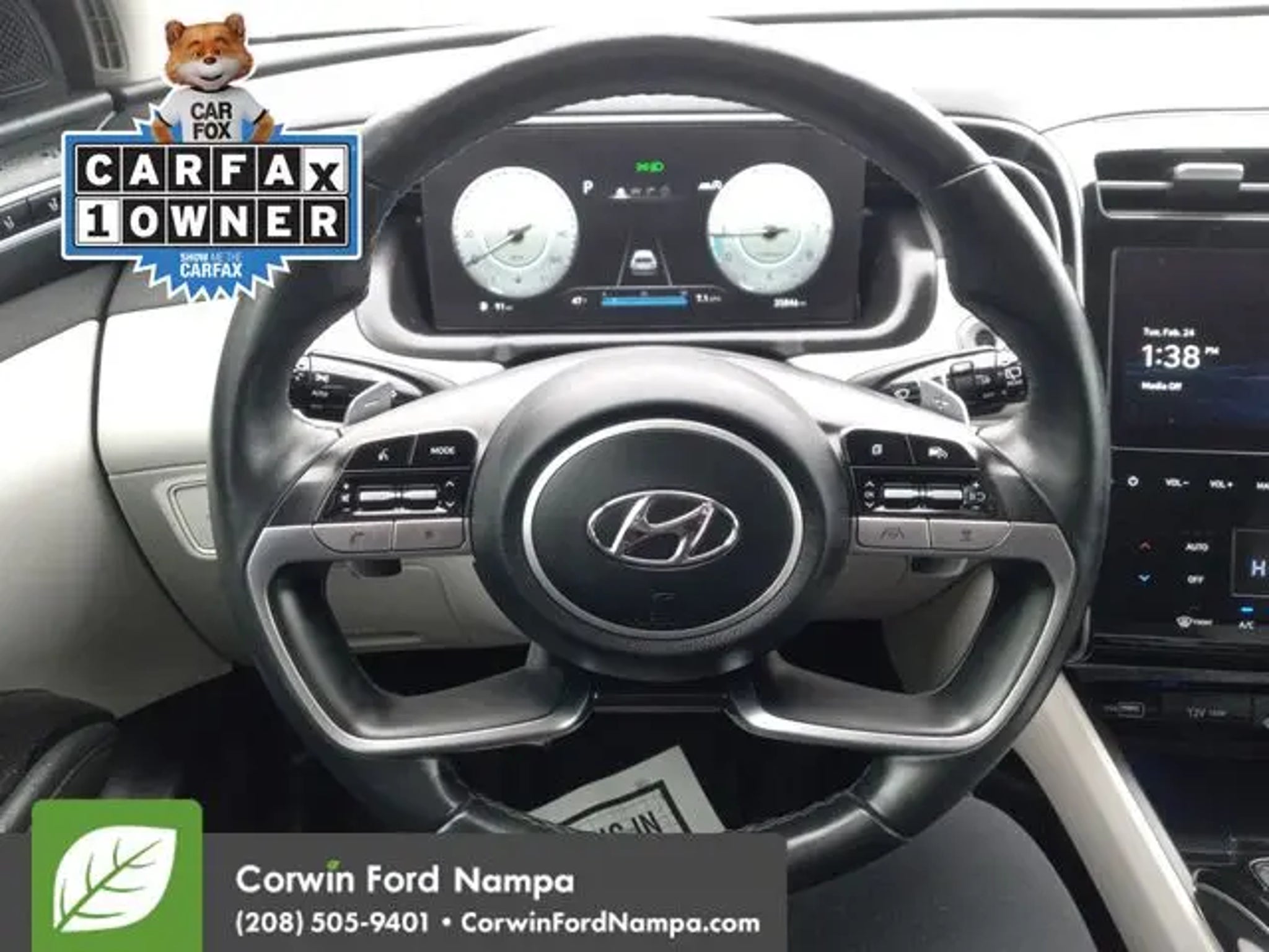 Our One Owner 2022 Hyundai Tucson Limited AWD is a dynamic adventure machine with a dazzling Quartz White design! Motivated by a 2.5 Liter Smartstream 4 Cylinder that generates 187hp paired with an 8 Speed Automatic transmission to keep up with your busy days. This All Wheel Drive SUV also returns nearly 29mpg on the highway, and its sculpted surfaces create a compelling presence. In addition, our Tucson comes with deluxe details such as LED lighting, a panoramic sunroof, a hands-free liftgate, silver-painted skid plates, alloy wheels, and heated power mirrors. Crafted for comfort, our Limited cabin indulges your senses with heated/ventilated leather front and heated rear seats, a heated leather steering wheel, dual-zone automatic temperature control, keyless entry/ignition, and a double dose of display technology with a 10.25-inch instrument cluster and matching touchscreen. Use that or voice control to support full-color navigation, Android Auto®, Apple CarPlay®, Bluetooth®, wireless charging, and Bose audio. Smart storage makes this machine even more versatile. Hyundai helps keep you safer as you cruise through your world with a rearview camera, front/rear automatic braking, a blind-spot monitor, adaptive cruise control, a driver attention monitor, remote parking assistance, and semi-autonomous driving. Take home our Tucson Limited and arrive in a great state of mind! Save this Page and Call for Availability. We Know You Will Enjoy Your Test Drive Towards Ownership! Corwin Ford Nampa! Friendly service and aggressive pricing is why we are your new and pre-owned vehicle dealer serving, Nampa, Boise, Meridian, Caldwell, Kuna, Eagle, Emmett, Idaho City, Wilder, New Plymouth, Star, Middleton, Weiser, Payette, Horseshoe Bend, Mountain Home, Idaho, and surrounding states.