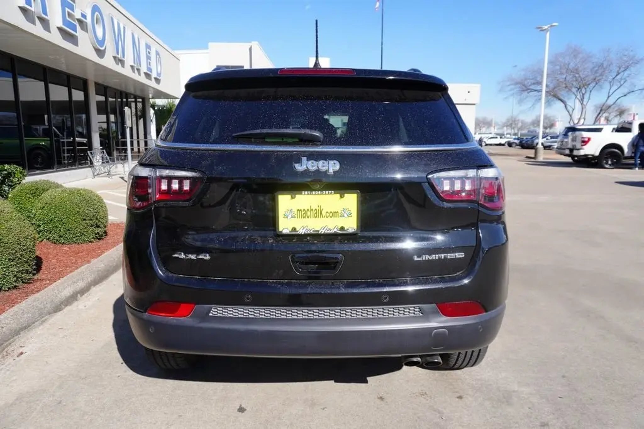 This 2019 Jeep Compass Limited in Diamond Black Crystal Pearlcoat includes the following features: 2.4L I4 9-Speed Automatic 4WD Quick Order Package 27G (DISC), Safety & Security Group (Blind Spot & Cross Path Detection, ParkSense Rear Park Assist System, and Rain Sensitive/Intermittent Wipers), 4WD, 3.73 Axle Ratio, 4-Wheel Disc Brakes, 6 Speakers, ABS brakes, Air Conditioning, Alloy wheels, AM/FM radio: SiriusXM, Anti-whiplash front head restraints, Apple CarPlay/Android Auto, Auto-dimming Rear-View mirror, Automatic temperature control, Brake assist, Bumpers: body-color, Compass, Delay-off headlights, Driver door bin, Driver vanity mirror, Dual front impact airbags, Dual front side impact airbags, Electronic Stability Control, Four wheel independent suspension, Front anti-roll bar, Front Bucket Seats, Front Center Armrest w/Storage, Front dual zone A/C, Front fog lights, Front reading lights, Fully automatic headlights, Google Android Auto, GPS Antenna Input, Heated door mirrors, Heated front seats, Heated steering wheel, Illuminated entry, Knee airbag, Leather Shift Knob, Leather Trimmed Bucket Seats, Low tire pressure warning, Manufacturer's Statement of Origin, Occupant sensing airbag, Outside temperature display, Overhead airbag, Overhead console, Panic alarm, ParkView Rear Back-Up Camera, Passenger door bin, Passenger vanity mirror, Power door mirrors, Power driver seat, Power steering, Power windows, Radio: Uconnect 4 w/8.4 Display, Rear anti-roll bar, Rear seat center armrest, Rear window defroster, Rear window wiper, Remote keyless entry, Roof rack: rails only, Security system, Speed control, Split folding rear seat, Spoiler, Steering wheel mounted audio controls, Tachometer, Telescoping steering wheel, Tilt steering wheel, Traction control, Trip computer, Turn signal indicator mirrors, USB Host Flip, Variably intermittent wipers, and Wheels: 18 x 7.0 Polished/Gray Pockets Aluminum. Diamond Black Crystal Pearlcoat 2019 Jeep Compass Limited 4WD 9-Speed Automatic 2.4L I4 4WD. Recent Arrival! 22/30 City/Highway MPG At Mac Haik Ford Pasadena, we believe in customer satisfaction and try to make it our mission that each and every shopper is happy with our service. Drivers in Pasadena and all of Houston's surrounding areas have made the drive to Mac Haik Ford Pasadena again and again. Visit us now and experience our top-class customer service yourself!