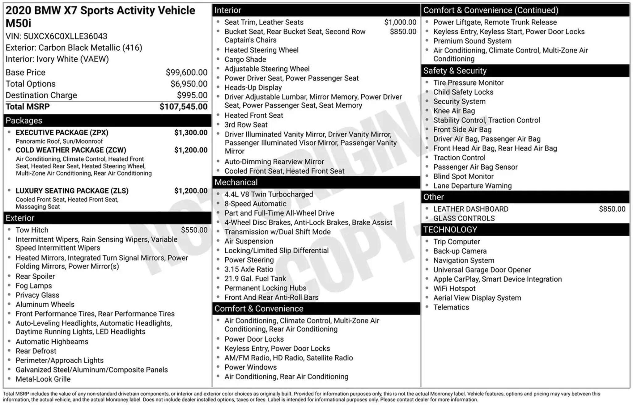 Our **Accident Free**2021**BMW**X7**M50i**xDrive**Navigation**Sunroof** delivers dynamic advantages for families who prefer performance driving in Carbon Black Metallic! Powered by a Twin-TurboCharged 4.4 Liter V8 providing 523hp to paddle-shifted 8 Speed Steptronic Automatic transmission. This All Wheel Drive SUV also boasts an M-tuned suspension, M Sport brakes, and an M Sport rear differential for additional athletic capability, and it sees nearly 21mpg on the highway. Bold style comes into play with our X7's adaptive LED lighting, panoramic sunroof, hands-free liftgate, aero bodywork, roof rails, and 22-inch wheels. The sophisticated look draws attention with a masterful style. Well-equipped for modern adventure, our M50i cabin pampers your family with heated/cooled leather power front seats, versatile second/third rows, a heated power M steering wheel, heated rear seats, four-zone automatic climate control, keyless access, and Live Cockpit Professional technology. It keeps you connected on the go with two 12.3-inch displays, full-color navigation, WiFi compatibility, Apple CarPlayÂ, BluetoothÂ, and Harman Kardon audio. There's ample cargo space for premium functionality, too! BMW's Active Driving Assistant is standard to protect you during difficult situations with blind-spot monitoring, automatic braking, forward collision warning, a rearview camera, lane-departure warning, and more. Exclusive and exhilarating, our X7 M50i is engineered to excel! Save this Page and Call for Availability. We Know You Will Enjoy Your Test Drive Towards Ownership!