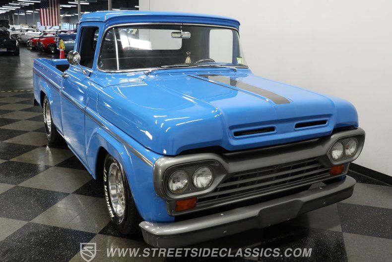 Well-appointed and featuring a confidence-inspiring running condition, this 1959 Ford F-100 Restomod would be the perfect match for the classic truck enthusiast who puts a high premium on comfortable drivability. Call today! Be sure to ask about our services offered; Financing, Vehicle Protection Plan, Insurance, and Transportation to your driveway!