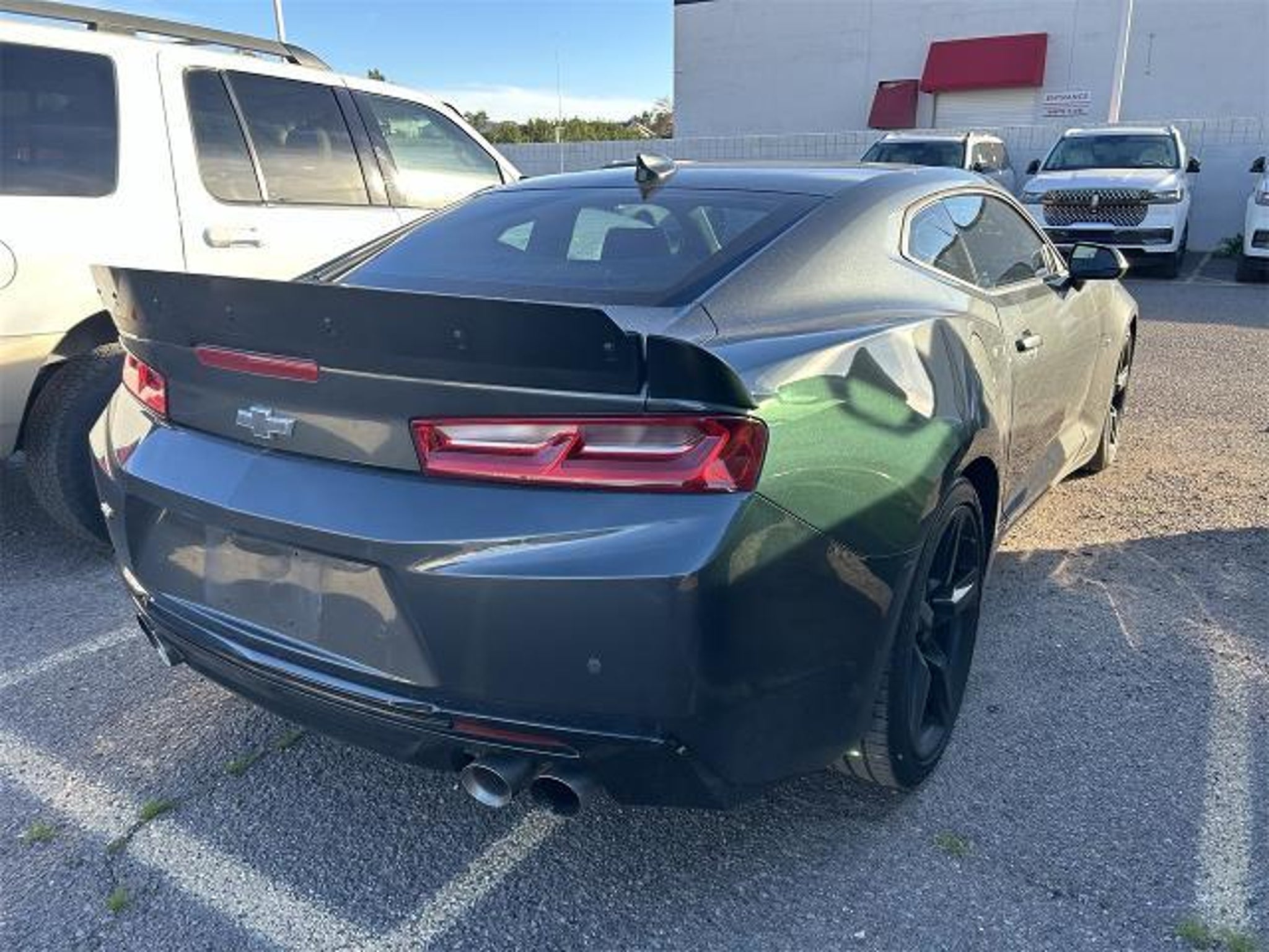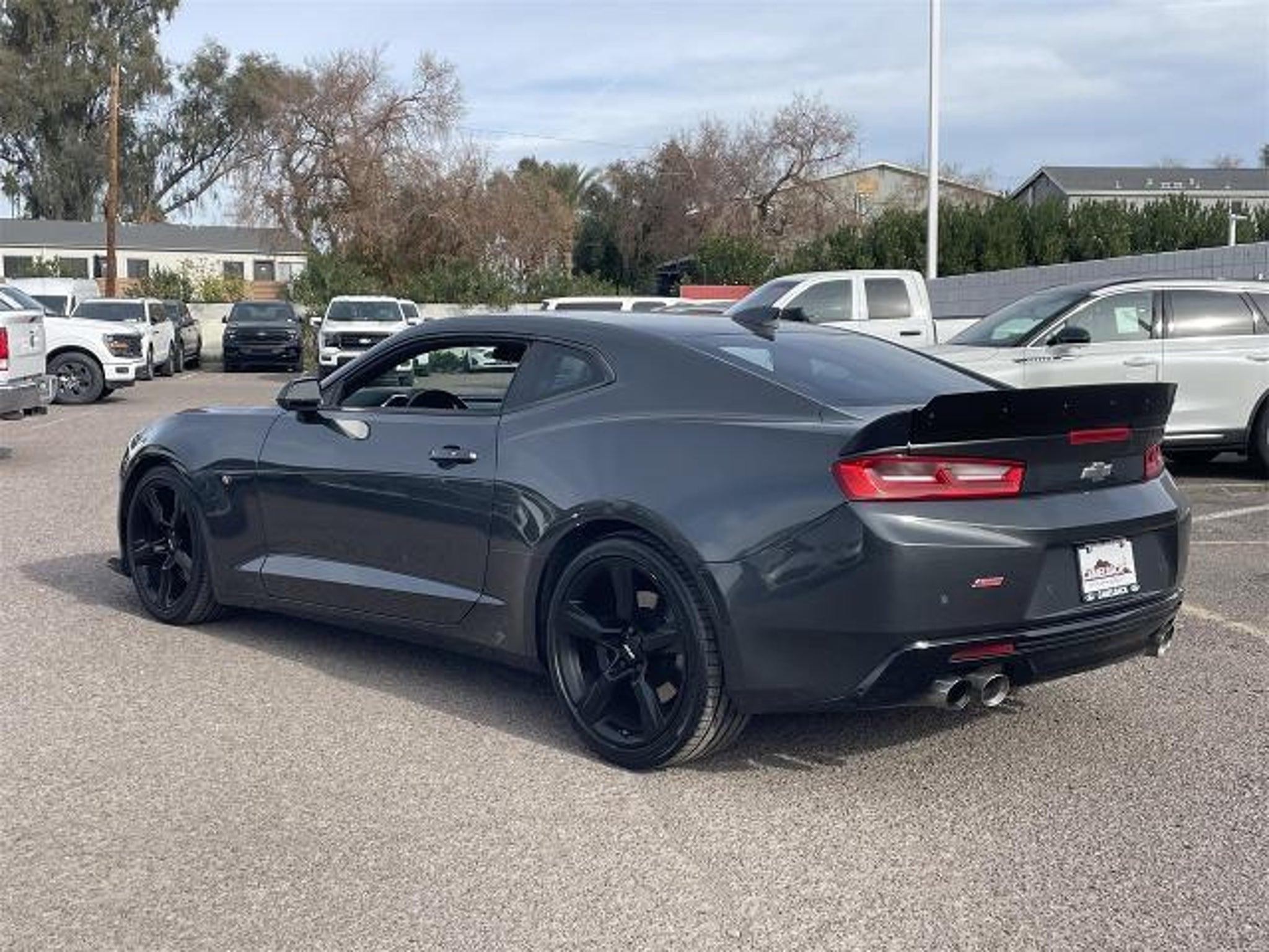Experience the thrill of driving the 2017 Chevrolet Camaro SS, where power meets precision. This iconic 2D coupe, finished in a striking Nightfall Gray Metallic, houses a formidable 6.2L V8 engine paired with an 8-speed automatic transmission. Designed for those who crave performance, the Camaro SS offers rear-wheel drive and a locking/limited-slip differential, ensuring a responsive and exhilarating drive. The aluminum wheels and performance tires grip the road, while the rear spoiler adds a touch of aggressive style.
