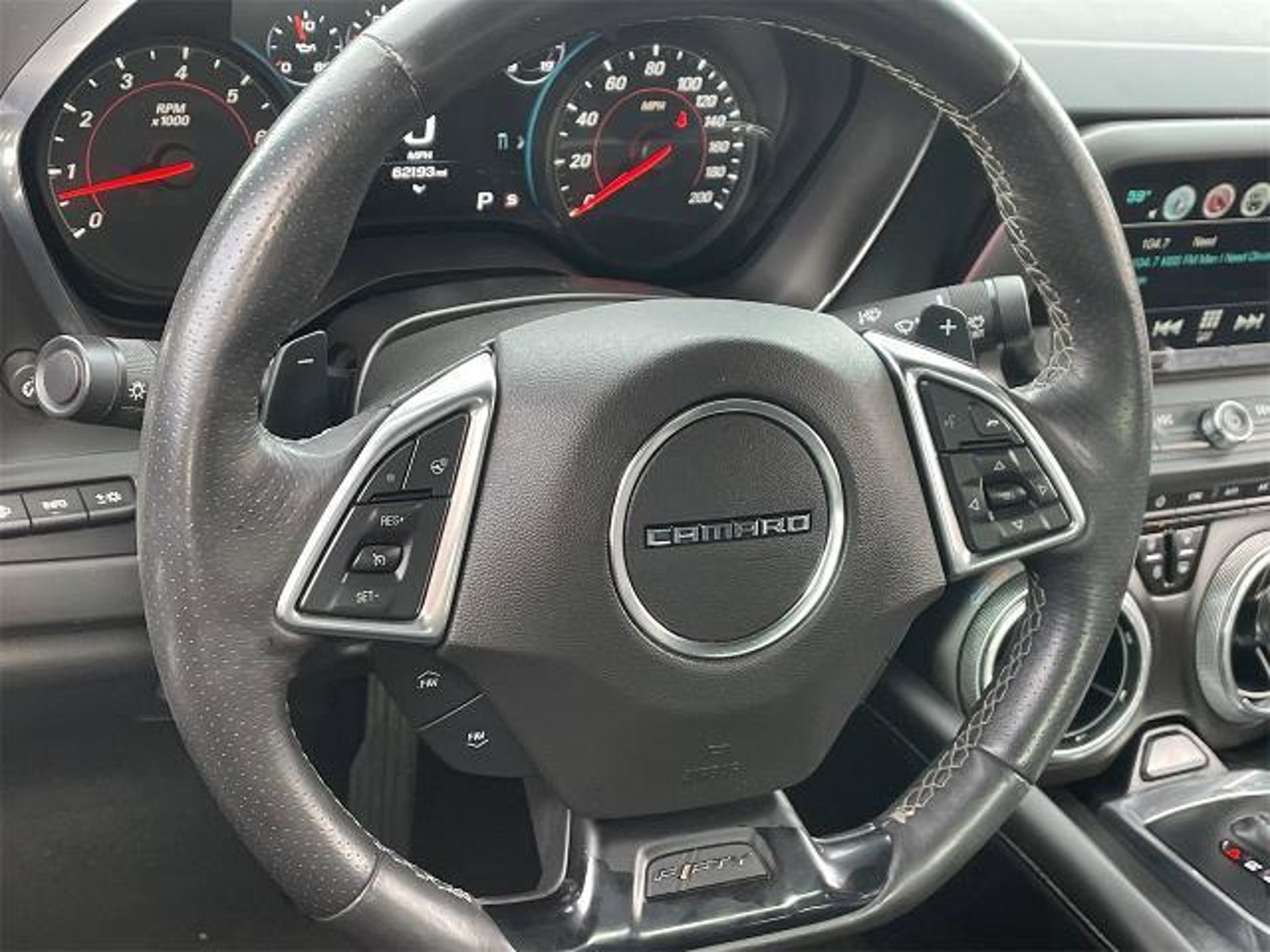 Inside, the Camaro SS boasts premium leather bucket seats, with both heating and cooling options for ultimate comfort. The driver-focused cockpit features a heads-up display and a heated steering wheel, allowing you to stay connected and in control. The premium sound system and smart device integration ensure your favorite tunes accompany every journey.