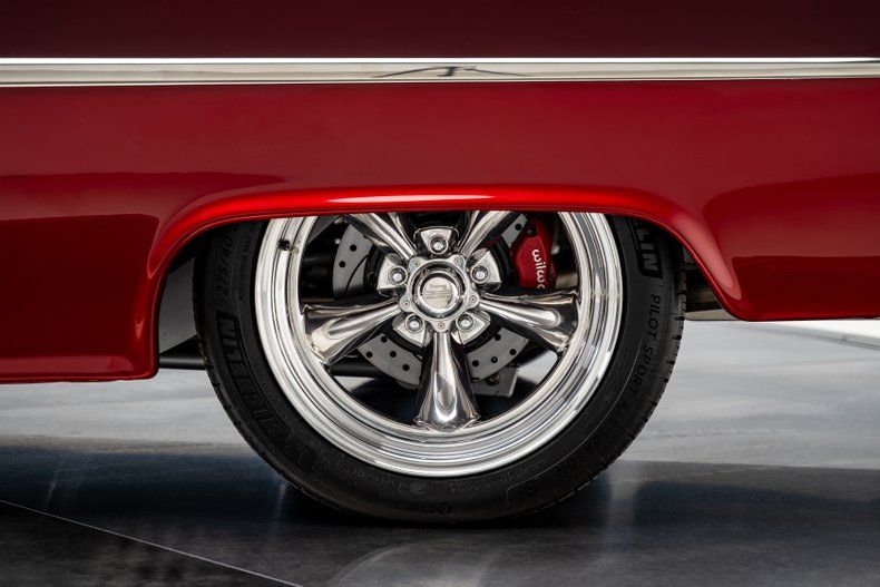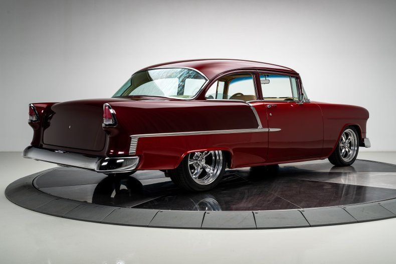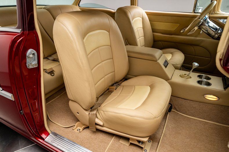 A full custom '55 210 lives or dies by its execution, and this one hits the mark from every angle. The car was torn down and rebuilt with fresh metal, a Roadster Shop Fast Track chassis, and a Chevrolet Performance LS376/480 that gives it real punch without turning it into a handful. The body wears a deep two-tone metallic burgundy that suits the shape perfectly, and the custom tan leather interior brings the cabin up to the standard you expect from a high-end build. It's a thoughtfully finished Tri-Five with modern performance, modern comfort, and a level of detail that makes the whole car feel cohesive