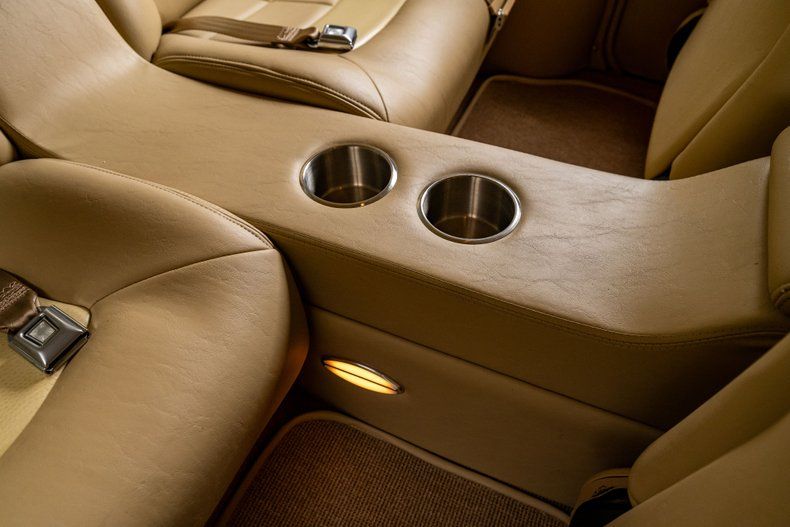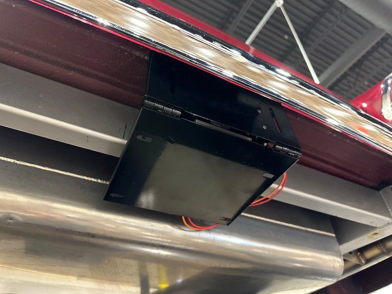 The restoration went all the way down to bare steel, then came back together with tight gaps, shaved details, and slick two-stage paint that looks liquid. The front end keeps the classic look but trades the factory clutter for a smoothed bumper, polished grille, clean lighting, and a nosed hood. Stainless trim outlines the post car greenhouse and traces the body lines without fighting the paint, and polished 18" American Racing wheels fill the wells with the right amount of modern presence. Out back, another smoothed bumper frames a decked trunk and LED tail lamps, one of which flips open to access the fuel filler. Nothing here feels overdone. It's simple, sharp, and confident.