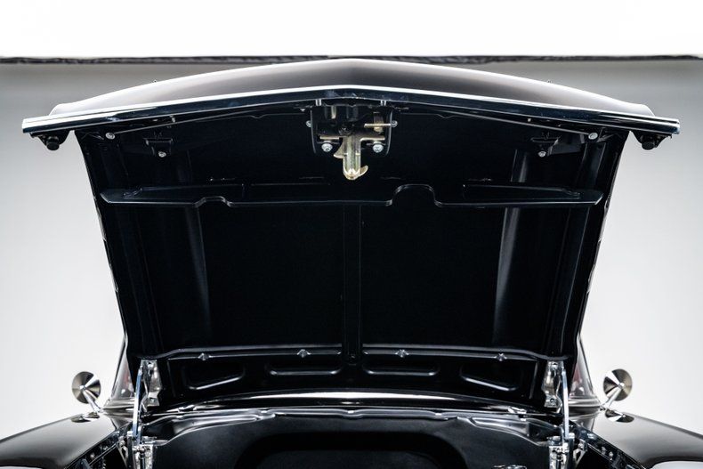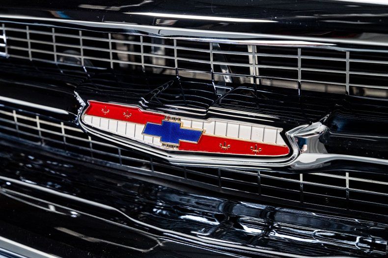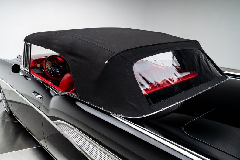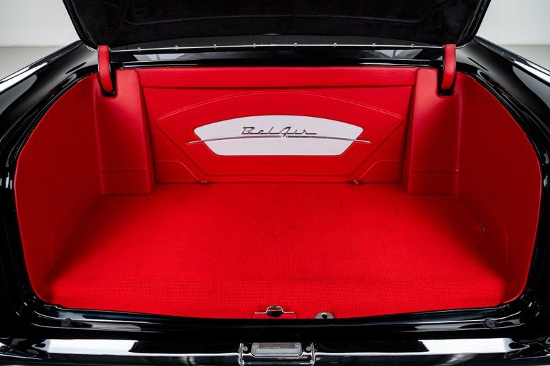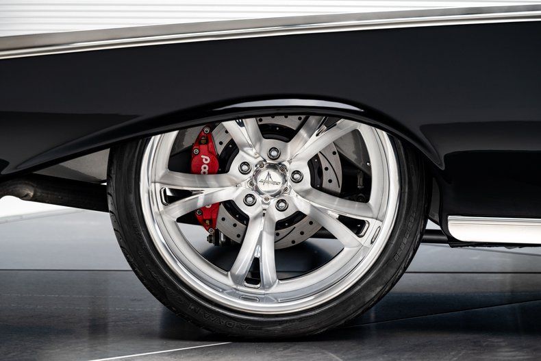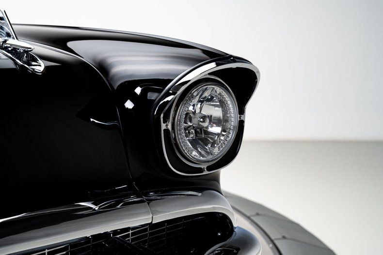 The body was taken through a comprehensive, ground-up restoration and finished in deep, glossy black two-stage paint. Panel fit is tight, surfaces are flat, and the car presents with a refined, deliberate stance that makes a statement. Chrome and stainless trim are tastefully retained and well executed, including the Bel Air side spears, brightwork, and bumpers. Modern lighting elements are subtly integrated, and the cloth convertible top fits cleanly without distracting from the car's classic lines. Schott Mach V wheels, measuring 18" up front and 20" in the rear, give the car a modern stance and look amazing on the timeless design.