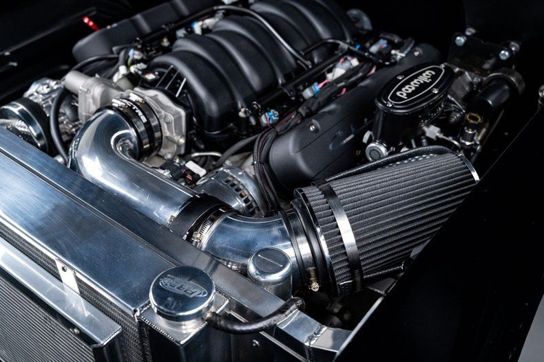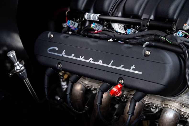 Under the hood sits a GM 7.0L LS7 V8 rated at 505 horsepower and 470 lb-ft of torque, bringing genuine supercar-level output to a platform that originally made a fraction of that. Long-tube headers feed a stainless exhaust system with Magnaflow mufflers, giving the car a deep tone. Power is routed through a 4L80E 4-speed automatic transmission to a Ford 9" rear axle with 3.50 gearing and limited-slip differential, all mounted in a powder-coated Art Morrison chassis. The suspension setup replaces the original architecture with tubular control arms, adjustable coilovers, and a four-link rear, paired with power rack-and-pinion steering. Power-assisted Wilwood four-wheel disc brakes provide confident stopping power.