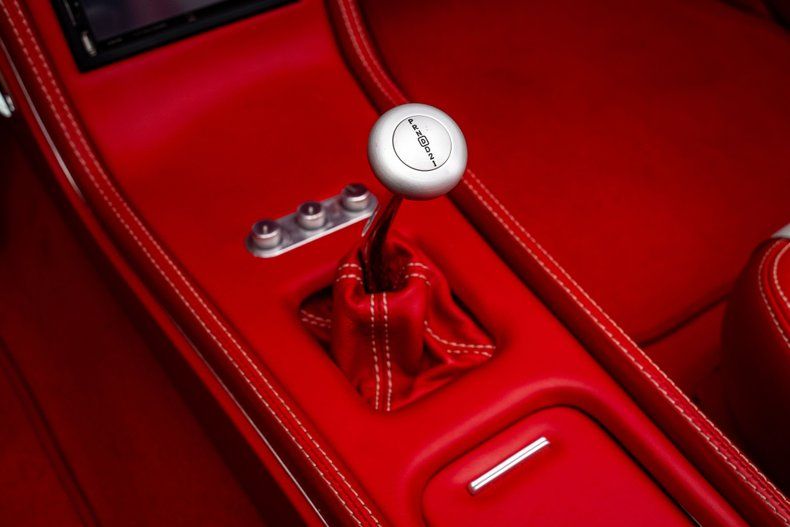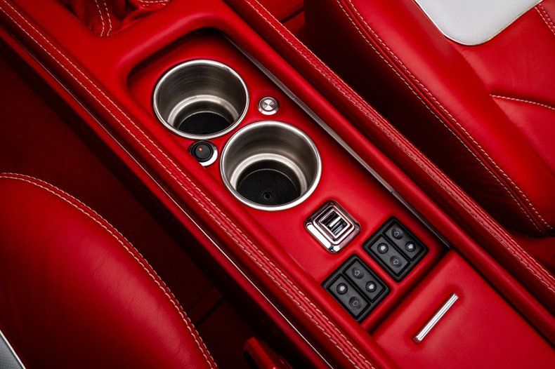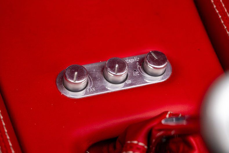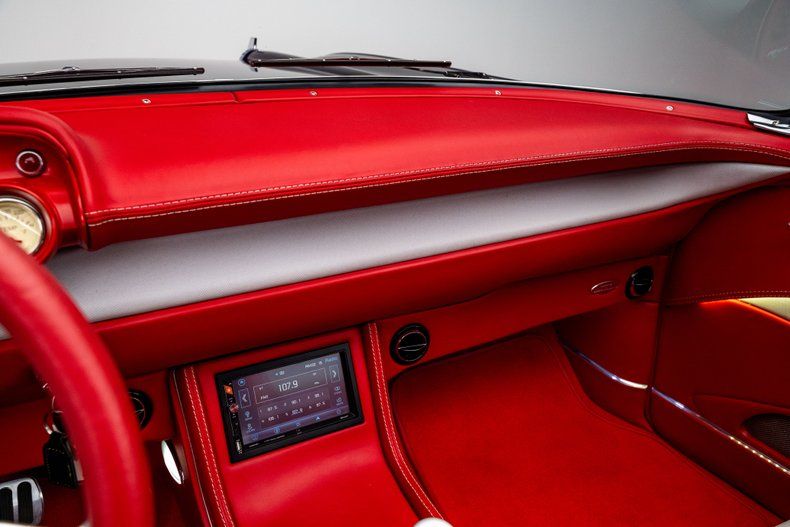 The red leather interior was custom-built by Steve Holcomb of Pro Auto Custom Interiors and reflects the same balance of classic influence and modern execution. Custom leather bucket seats offer power adjustment up front, while the dash retains a familiar layout enhanced by Classic Instruments gauges and Vintage Air climate control for modern air conditioning. A full-length center console houses a Lokar shifter, power window and top controls, cupholders, and a modern touchscreen audio system with Bluetooth capability. It's an upscale interior that is cohesive and show-worthy.