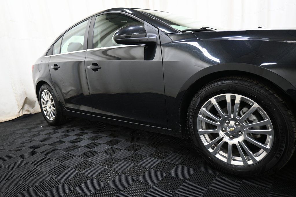 2014 Chevrolet Cruze ECO Black Granite Metallic ECOTEC 1.4L I4 SMPI DOHC Turbocharged VVT FWD 6-Speed Automatic Electronic with Overdrive ABS brakes AM/FM radio: SiriusXM Auto-Dimming Inside Rear-View Mirror Brake assist Bumpers: body-color Driver 6-Way Power Seat Adjuster Driver/Front Passenger Illuminated Vanity Mirrors ECO Driver Convenience Package Front reading lights Front wheel independent suspension Fully automatic headlights Outside Heated Power-Adjustable Body-Color Mirrors Outside temperature display Preferred Equipment Group 1SF Premium Cloth Seat Trim Radio: Chevrolet MyLink Audio System w/Navigation Rear Vision Camera Remote keyless entry Remote Vehicle Starter System SiriusXM Satellite Radio Speed control Steering wheel mounted audio controls Traction control.
