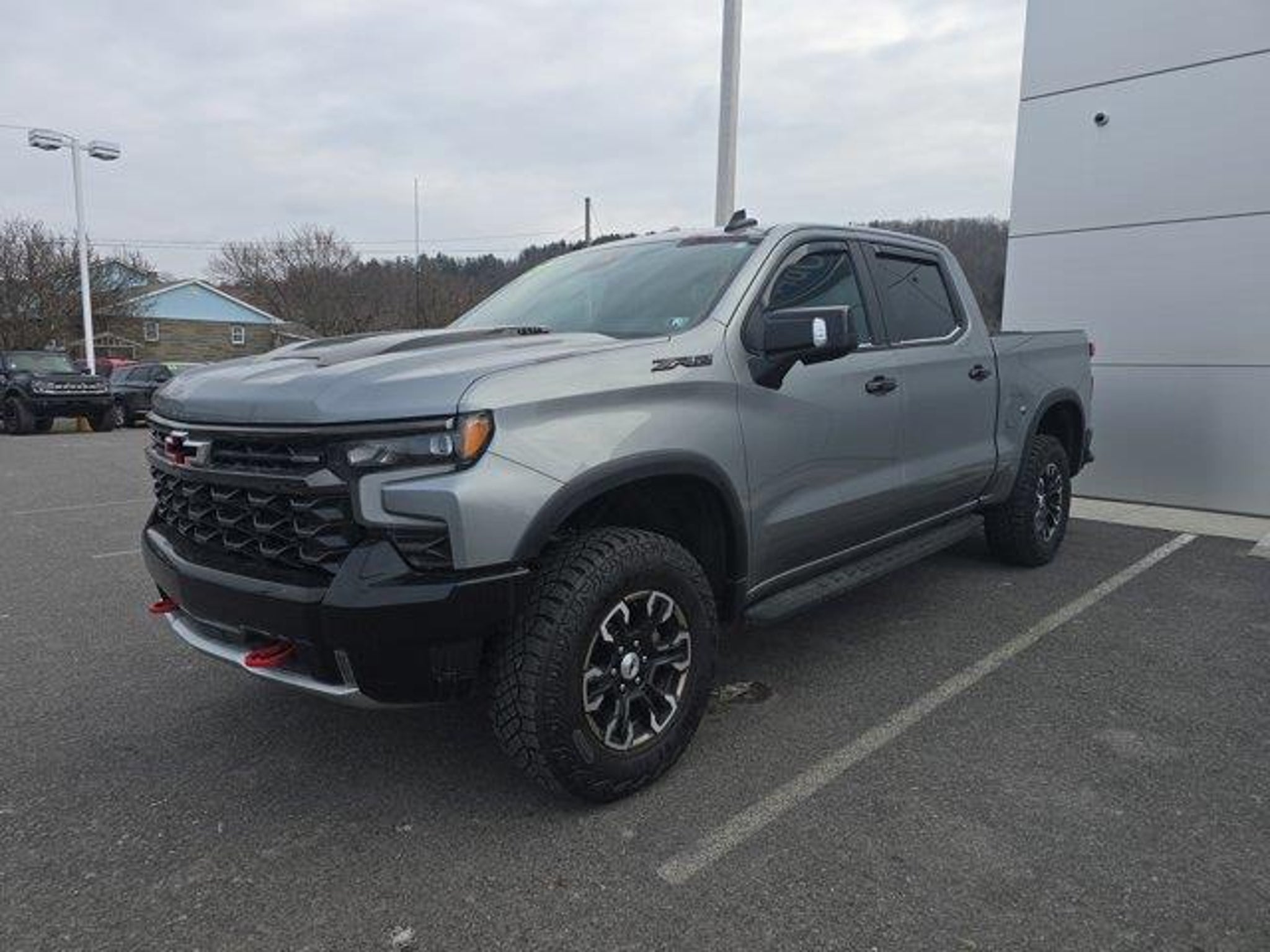 Sterling Gray Metallic 2023 Chevrolet Silverado 1500 ZR2 4WD 10-Speed Automatic EcoTec3 6.2L V8 Fresh Oil Change, 10-Speed Automatic, 4WD, Jet Black/Graystone Leather, 15 Diagonal Multicolor Head-Up Display, Adaptive Cruise Control, Power Tilt & Telescoping Steering Column, Rear Camera Mirror, Technology Package. Recent Arrival!