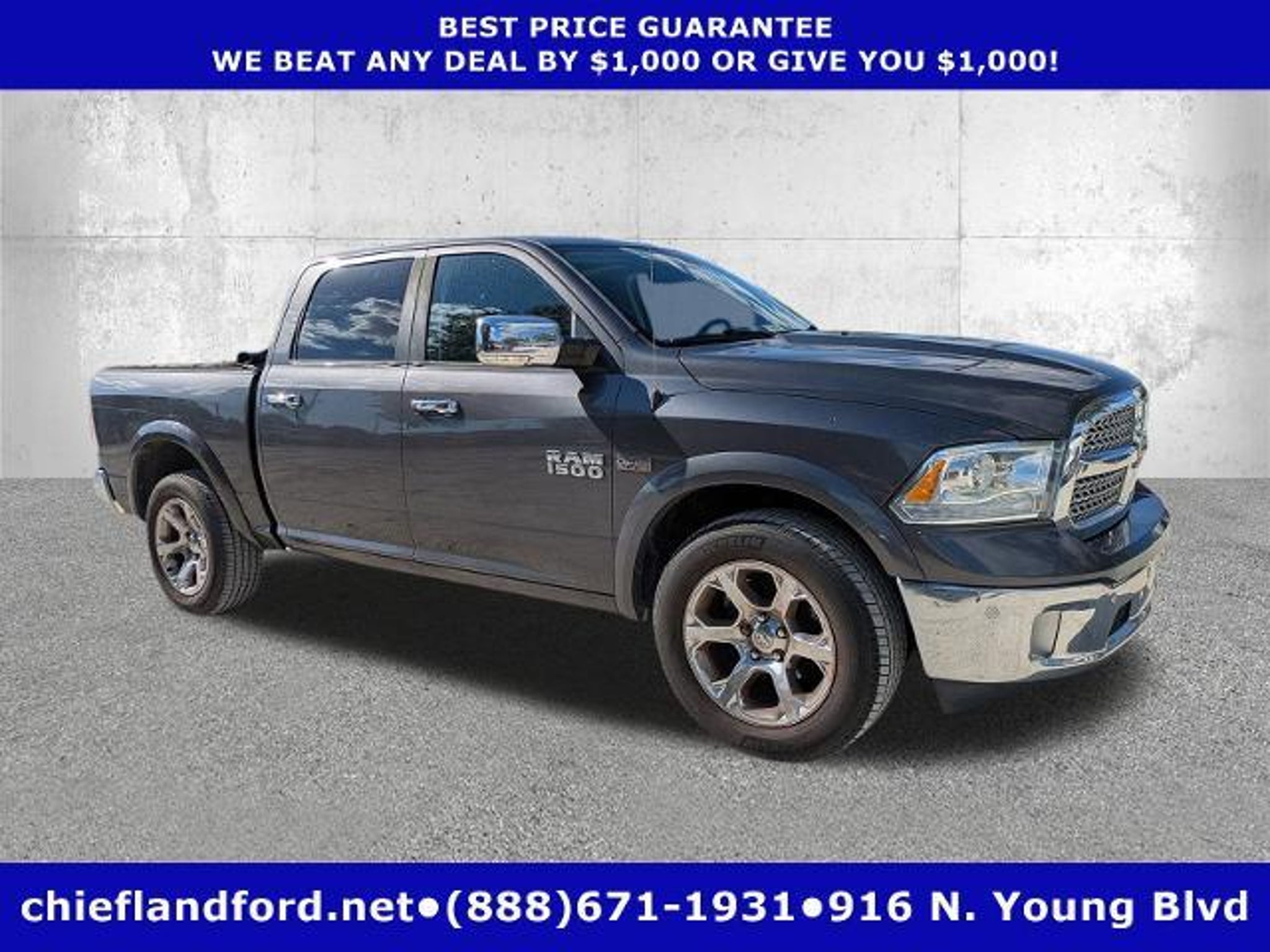 $2,596 below KBB Retail! Only 68,534 Miles! Delivers 21 Highway MPG and 15 City MPG! This Ram 1500 delivers a Regular Unleaded V-8 5.7 L/345 engine powering this Automatic transmission. WHEELS: 20' X 9' CHROME CLAD ALUMINUM (STD), TRANSMISSION: 8-SPEED AUTOMATIC (8HP70), TIRES: P275/60R20 OWL AS. This Ram 1500 Comes Equipped with These Options QUICK ORDER PACKAGE 26H LARAMIE -inc: Engine: 5.7L V8 HEMI MDS VVT, Transmission: 8-Speed Automatic (8HP70), GVWR: 6,900 lbs, REMOTE START SYSTEM, REAR WINDOW DEFROSTER, RADIO: UCONNECT 8.4 NAV -inc: Uconnect Access 1 Year Trial, HD Radio, 1 Yr, Trial (Registration Required), 5-Year SiriusXM Travel Link Service, GPS Navigation, 5-Year SiriusXM Traffic Service, SiriusXM Travel Link, 1 Year Sirius Travel Link Service, SIRIUSXM Traffic, 1 Year Sirius Real Time Traffic Service, POWER SUNROOF, PARKSENSE FRONT/REAR PARK ASSIST SYSTEM, MONOTONE PAINT, LED BED LIGHTING, GVWR: 6,900 LBS, GRANITE CRYSTAL METALLIC CLEARCOAT. Visit Us Today A short visit to Chiefland Ford located at 916 N. Young Blvd, Chiefland, FL 32626 can get you a trustworthy 1500 today!
