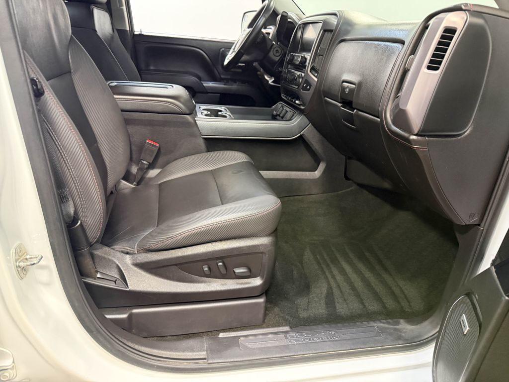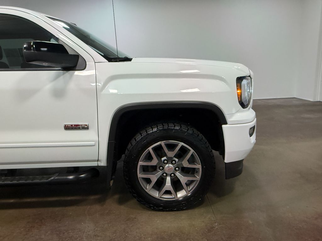 The Sierra 1500 SLT also comes equipped with the All Terrain SLT Premium Package which includes high-performance LED headlamps front and rear park assist black round assist steps a heated steering wheel and a sliding rear window. The All Terrain Package further enhances the vehicle's off-road capabilities with features like a spray-on bed liner bright machined aluminum wheels front bucket seats and a Bose premium audio system.