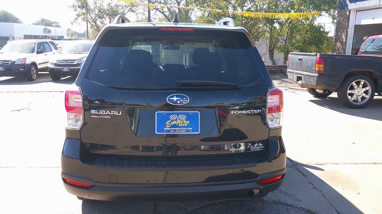 Here is a great deal on a Premium Forester Black with great options and MPG over 30. Runs and drives great and wow! Look at it! 90-day warranty and all the service work is done too. Fully inspected by the Local Subaru dealer, and the report is here to look at. Hurry in today, Get this below Bank book deal! The front windshield is in excellent condition. The paint is in great shape and condition. The tires are slightly worn with about 75% of tread life left. The interior was well-maintained and is extra clean. The exterior was well-maintained and is extra clean. The engine is functioning properly and has no issues. The transmission shifts very smoothly. This vehicle has no previous collision damage. The brakes are in great condition. The battery is in excellent condition. The car was previously owned by a non-smoker. A mini spare tire is included with this vehicle. Be an Empire buyer today! empireautosf.com 605 339-2225