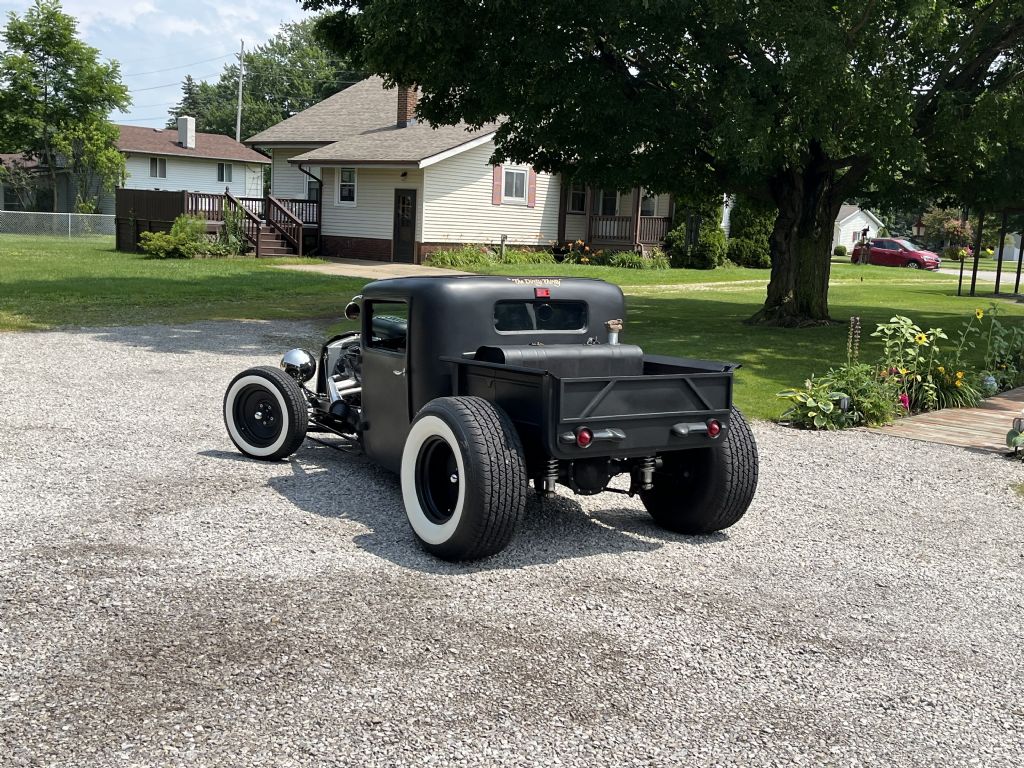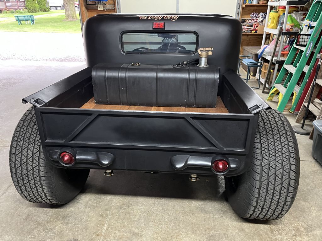 Body chopped, 350 crate-roller engine, 700R-2 overdrive trans w/ shift kit, Corvette servo, Flotek aluminum heads, stainless steel pushrods, small cam, MSD distributor, Edelbrock 600 CFM carb, 14" cooling fan, Yukon 3.23 gears and Posi-Trac differential.