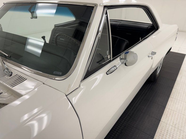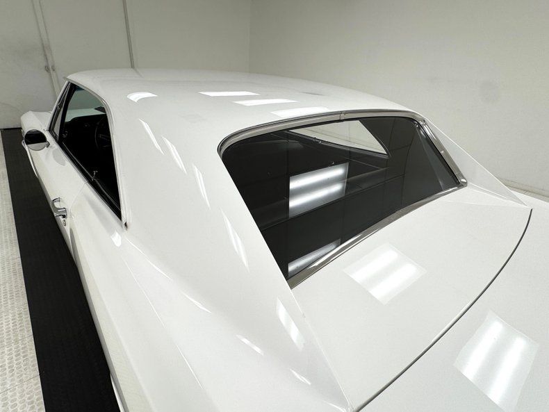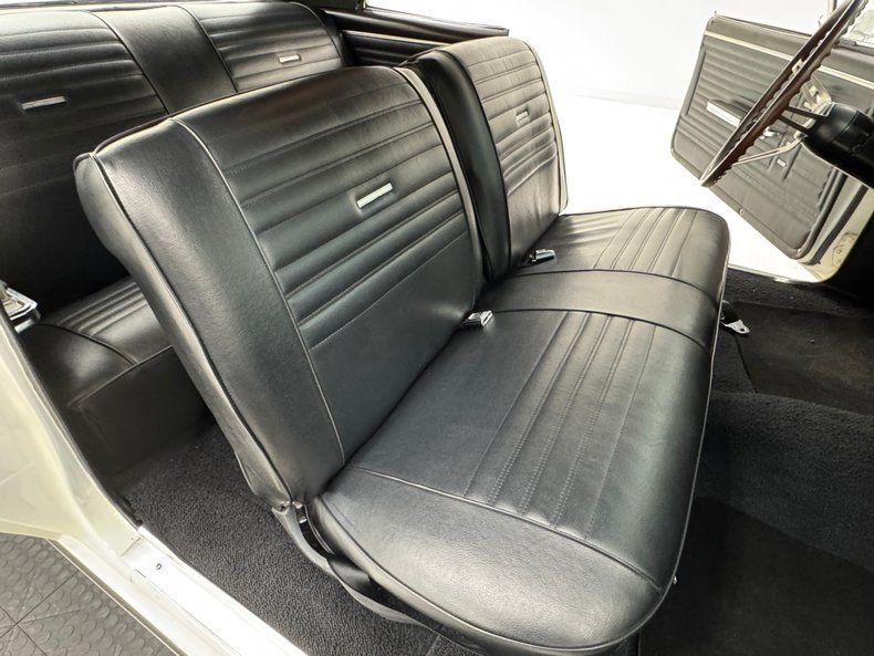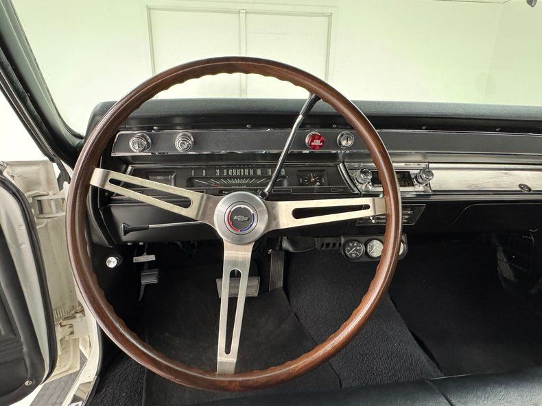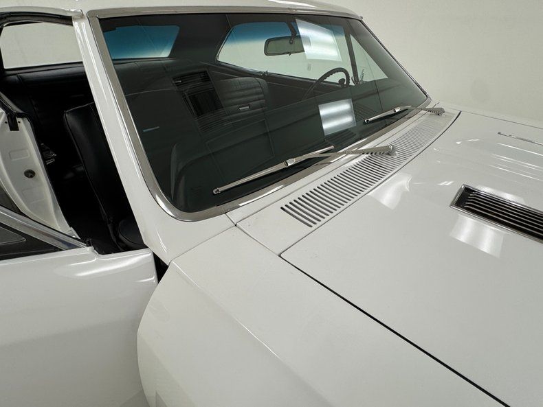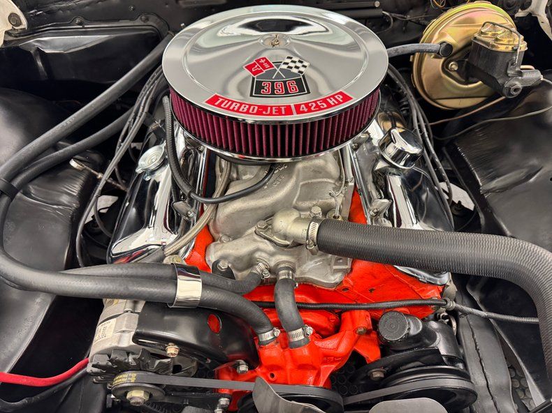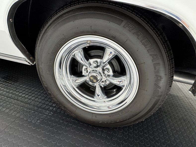 Named for an Arctic weasel, Ermine White now covers the car in two stage application and like that snow loving mammal, it's bright and beautiful. Ermines have black tips on the tail and so does our Chevelle with a clean, black latch panel and SS insignia dead center between pointed tail lights in an epic muscle car rear end capped off by angle cut exhaust tips. Up front, hood bulges house ornamental vents and the fascia shape mirrors that of the rear, this time with round headlights amongst horizontal bars of the grille. 15-inch polished American Racing Torque Thrust wheels send the right message and are wrapped in 225/70R15 tires with an early 2021 date code. The paint and trim is excellent on the car with a few imperfections noted as scuffs near the cowl and A-pillar, a chip on one of the buttresses and cracking at its base, and scuffs on the window trim in one section.