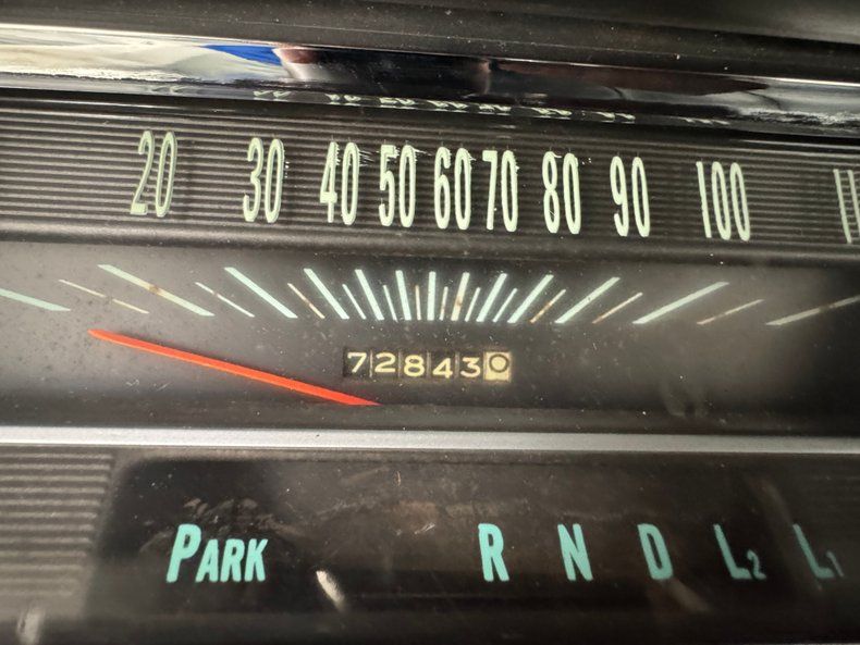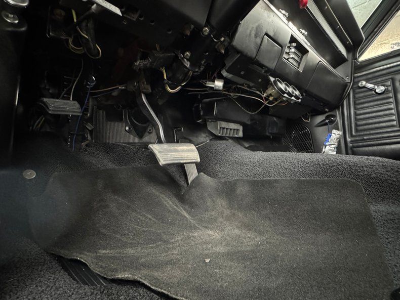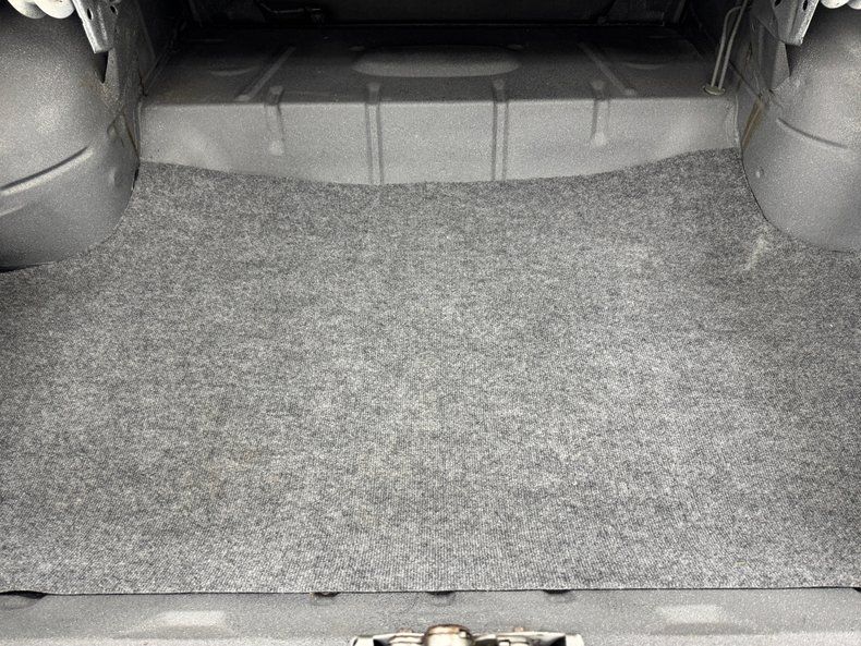 Perfect black vinyl panels adorn the doors with typical period design and modest ornamentation which is essentially mirrored on the split bench seat and the grain vinyl front and rear presents in very nice shape. A wood tone rimmed, three spoke steering wheel fronts the dash where instruments reside in horizontal layout while a newer AM/FM/Cassette radio lives in the ribbed metal mid panel over the vent levers and added tri-pack of gauges. Black loop carpet floods the floor and a black headliner rises above while in the trunk, a gray flannel covering completes our tour of this spotless interior space.