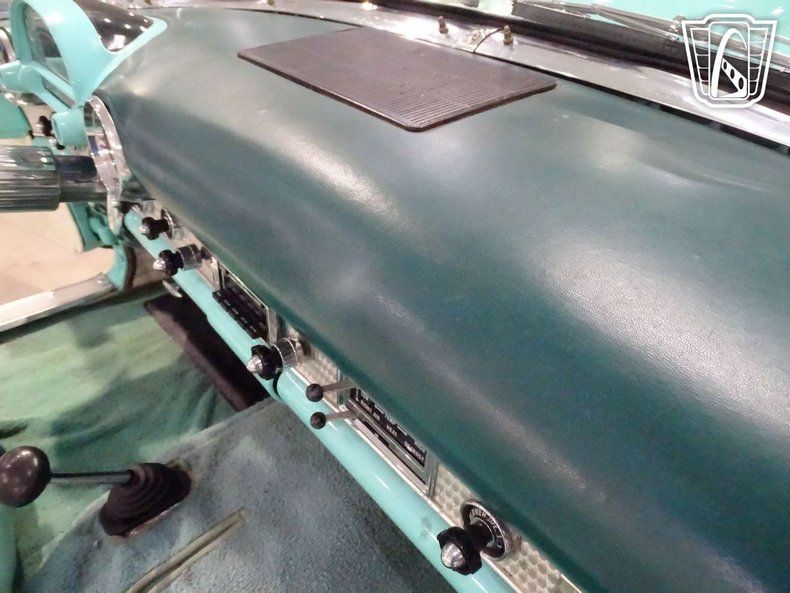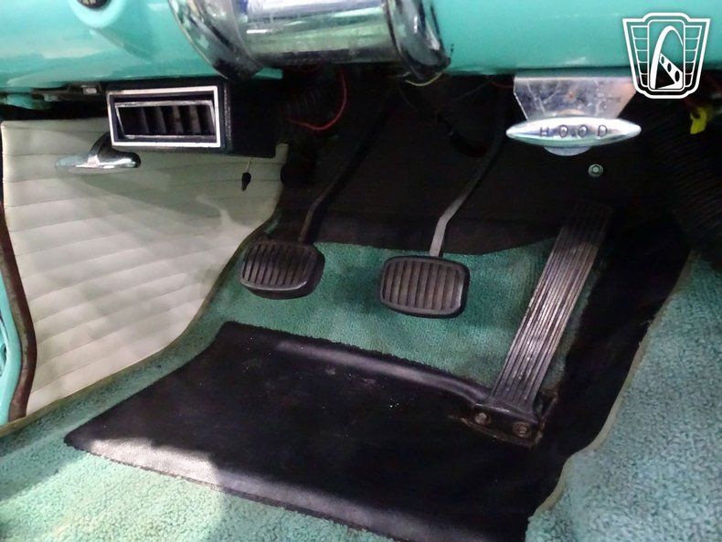Inside, the two-tone turquoise and white interior mirrors the exterior's color palette, surrounding the driver in brightwork, soft vinyl, and timeless design. From the wraparound windshield to the removable hardtop, every line of the Thunderbird was crafted to stand out among its contemporaries.