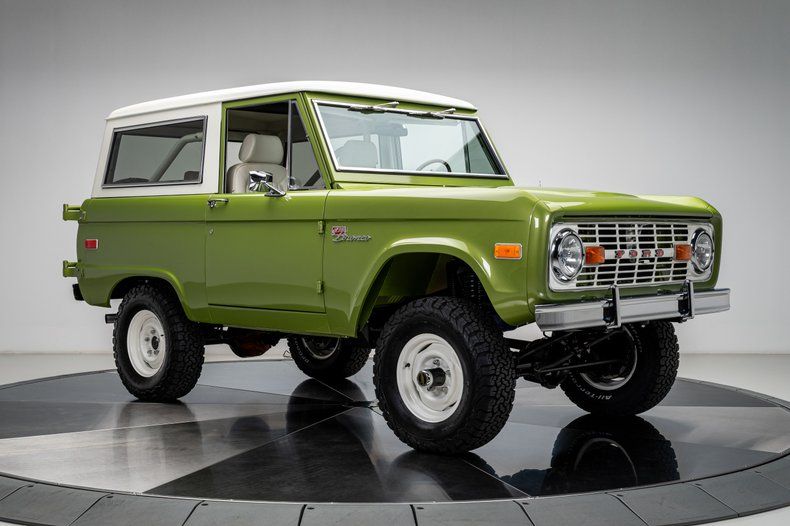 Finished in its factory-correct Limestone Green with an uncut body and period-correct stance, this 1973 Ford Bronco presents exactly as an early Bronco should, enhanced by subtle updates that improve usability without changing its character. That solid foundation was elevated through a comprehensive, frame-off restoration focused on reliability and real-world drivability rather than modern reinterpretation.