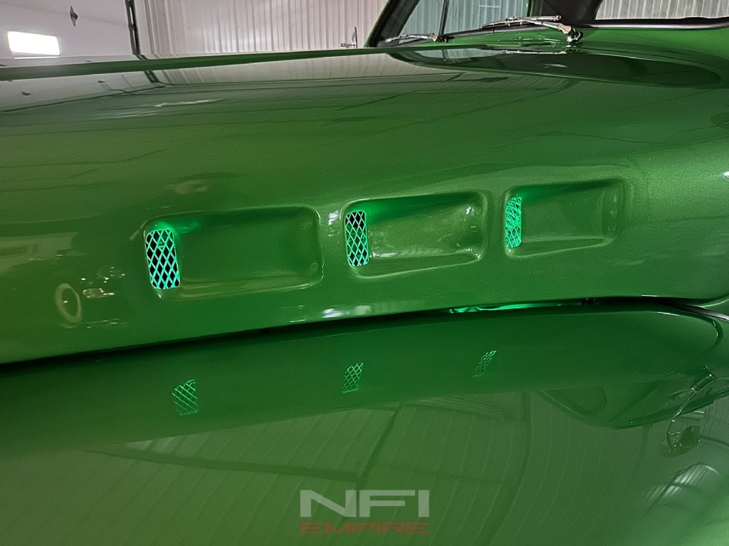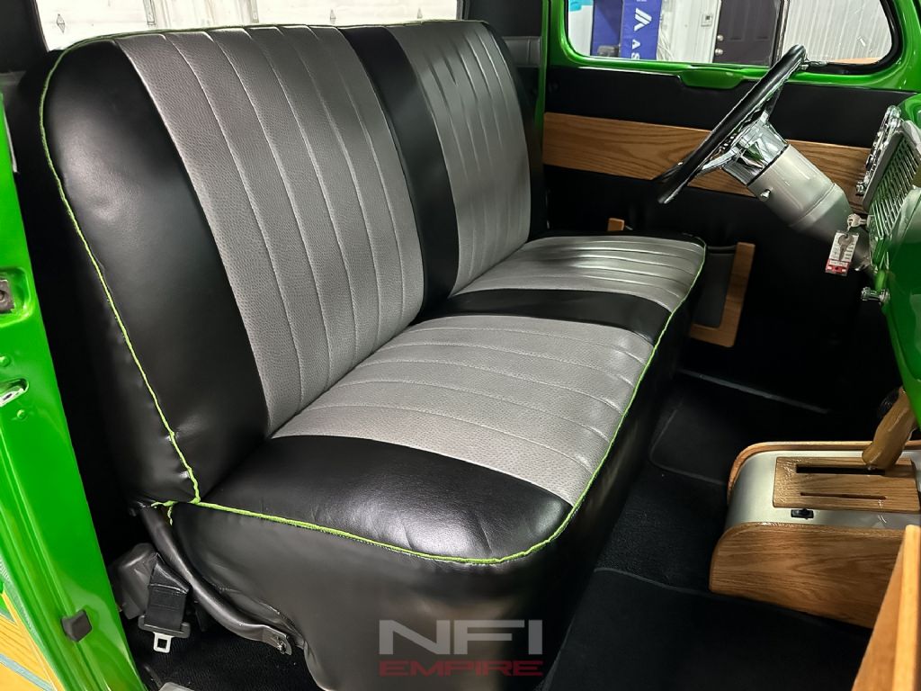 Inside, the truck maintains a clean, functional layout with an Ididit tilt steering column, Omega gauges, and a modern Bluetooth radio discreetly integrated for everyday usability. All wiring throughout the truck is new, and every nut and bolt has been replaced during the build. Everything on the truck is either new or properly reconditioned.