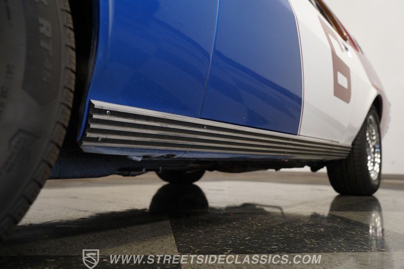 Under the hood, a rebuilt 390 cubic inch V8 delivers classic muscle car power, paired with a 4-speed Borg Warner T10 manual transmission for maximum driver engagement. The single Demon 4-barrel carburetor, chrome valve covers, and chrome air cleaner add visual flair and performance, while power front disc brakes and a factory-style lowered suspension ensure confident stops and surefooted handling. The AMC 20 rear axle and General Altimax RT45 tires round out a drivetrain built for both cruising and spirited driving.