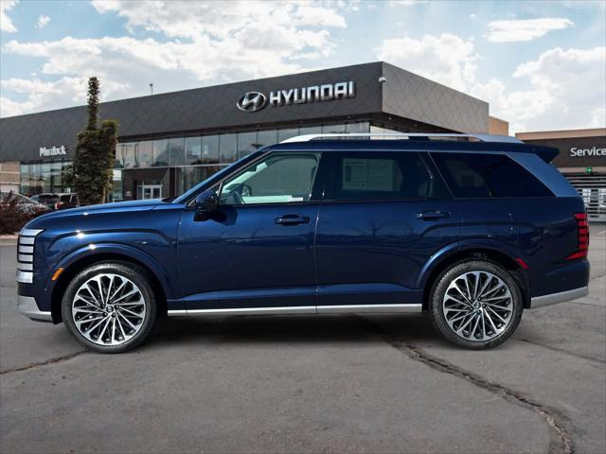 Calligraphy trim. EPA 24 MPG Hwy/18 MPG City! CARFAX 1-Owner. Heated Leather Seats, Sunroof, Navigation, 3rd Row Seat, Rear Air, All Wheel Drive, Power Liftgate, Alloy Wheels, Trailer Hitch, OPTION GROUP 01, Captains Chairs. KEY FEATURES INCLUDE Leather Seats, Third Row Seat, Navigation, All Wheel Drive, Quad Bucket Seats, Power Liftgate, Rear Air, Heated Driver Seat. Rear Spoiler, MP3 Player, Rear Seat Audio Controls, Remote Trunk Release. Hyundai Calligraphy with Classy Blue Pearl exterior and Gray/Navy interior features a V6 Cylinder Engine with 287 HP at 5800 RPM*. OPTION PACKAGES OPTION GROUP 01 standard equipment. EXCELLENT VALUE Was $54,807. This Palisade is priced $3,400 below J.D. Power Retail. Pricing analysis performed on 2/19/2026. Horsepower calculations based on trim engine configuration. Fuel economy calculations based on original manufacturer data for trim engine configuration. Please confirm the accuracy of the included equipment by calling us prior to purchase.