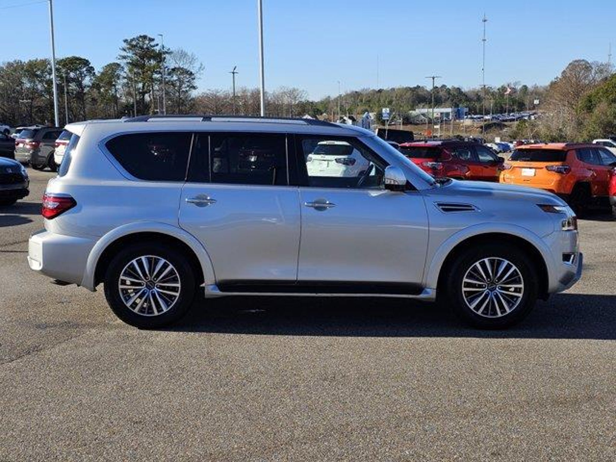 Boasts 18 Highway MPG and 13 City MPG! This Nissan Armada boasts a Regular Unleaded V-8 5.6 L/339 engine powering this Automatic transmission. CHARCOAL, LEATHER-APPOINTED SEAT TRIM, BRILLIANT SILVER METALLIC, [L92] 3RD ROW CARPETED FLOOR MATS - BENCH SEAT -inc: carpeted cargo mat.*This Nissan Armada Comes Equipped with These Options *[G01] MID-YEAR CHANGE, Wireless Phone Connectivity, Window Grid Diversity Antenna, Wheels: 20 x 8J Painted Alloy -inc: 18-spoke, Valet Function, Trunk/Hatch Auto-Latch, Trip Computer, Transmission: 7-Speed Automatic, Transmission w/Driver Selectable Mode, Sequential Shift Control and Oil Cooler, Trailer Wiring Harness.* Stop By Today *Stop by Premier Chrysler Dodge Jeep Ram located at 113 Highway 231 N, Troy, AL 36081 for a quick visit and a great vehicle!