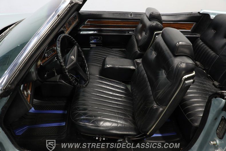 HIGHLIGHTS: Numbers matching 500 Cubic Inch Engine 3 Speed Automatic Transmission Front-Wheel-Drive Optional Hard Parade Boot Cover Power Top with Glass Rear Window Fender Skirts Ice Blue Metallic Paint Black Leather Interior Power Windows Power Seat Tilt/Telescopic Steering Column Factory AM/FM Stereo