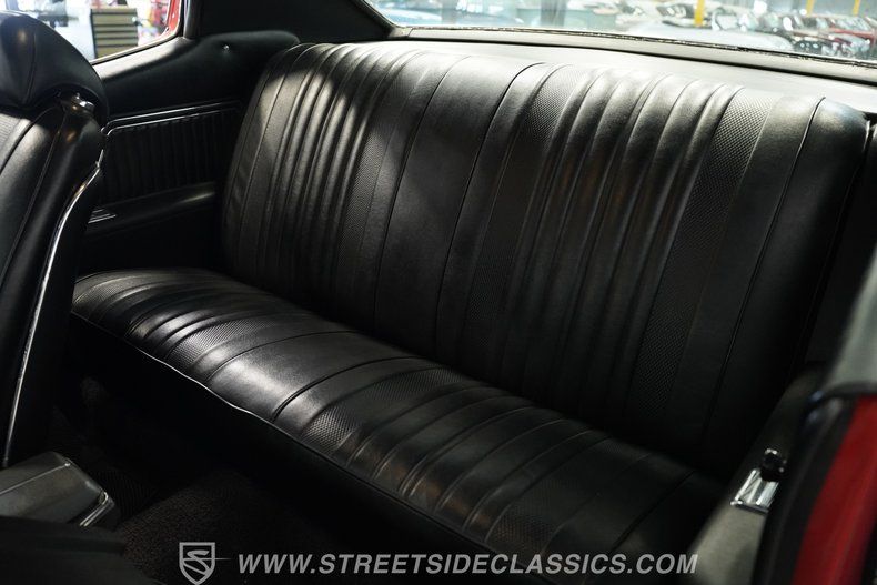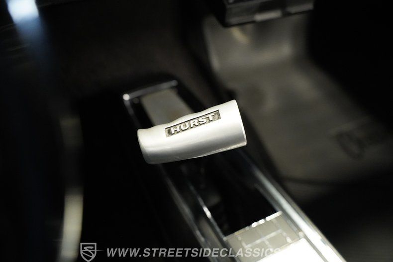 Inside, we find a clean, redone black vinyl interior. A center console separates a pair of supportive bucket seats, complete with headrests. A two-spoke power-assisted SS steering wheel sits just ahead of a six-pod gauge cluster, featuring a 7,000-rpm tachometer and a 120-mph speedometer. An original-looking AM radio exists in its factory location, but really, the Hurst T-bar shifter with an easy-to-see shift pattern provides all the entertainment you need for any long drive.