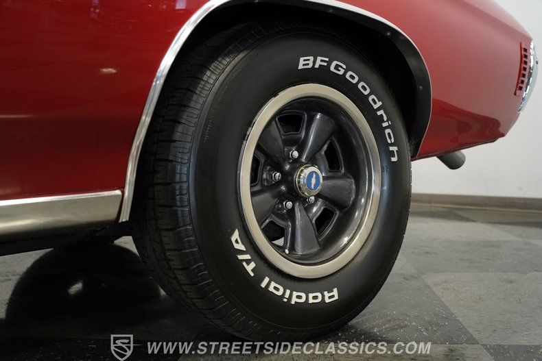 Under the hood, we find a clean engine bay with a massive naturally aspirated 502-cubic-inch V-8 on display. Using GM Performance aluminum heads, a Fast EFI throttle-body injection setup mounted on an aluminum Edelbrock intake manifold, this bruising big block does away with exhaust gases via long-tube headers capped with sweet-sounding FlowMaster mufflers. If you really want to make a statement, then flip the switch for the dual electric cutouts and listen to what an old-school muscle car can really sound like. That massive power is routed through a Richmond Super T-10 four-speed manual transmission before being sent to the 12-bolt rear end, which translates those ponies to the pavement via a set of 15-inch powder-coated wheels shod in BFGoodrich Radial T/A tires.