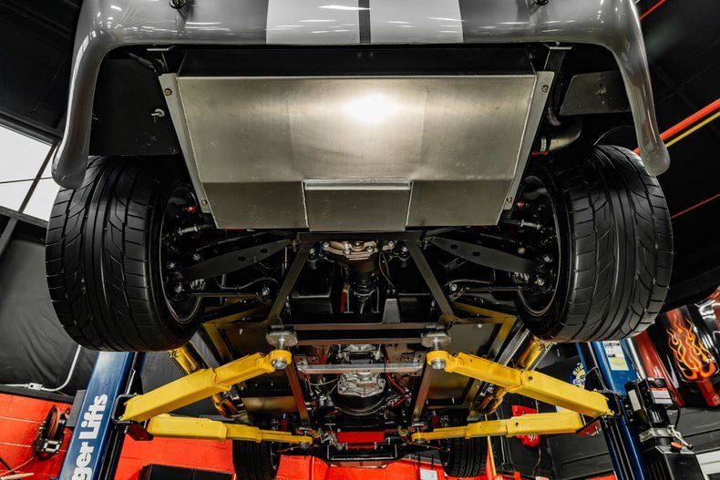 Under the forward-opening hood sits a Roush 427ci V8 Engine Making 560hp! Power is sent to the rear tires through a Tremec 5 Speed Manual Transmission and a Ford 8.8 Rear End with 3.55:1 Gears! This Cobra is equipped with a Hydraulic Clutch and Power Steering! The underside of this '65 looks brand new like the rest of the car! Take a look underneath to see the nice condition of the Painted Frame, Crossmember, Explosion Proof Bellhousing, Four Wheel Disc Brakes, Aluminum Fuel Tank and Independent RT4 Suspension!