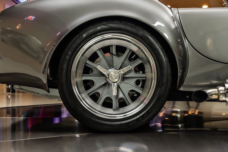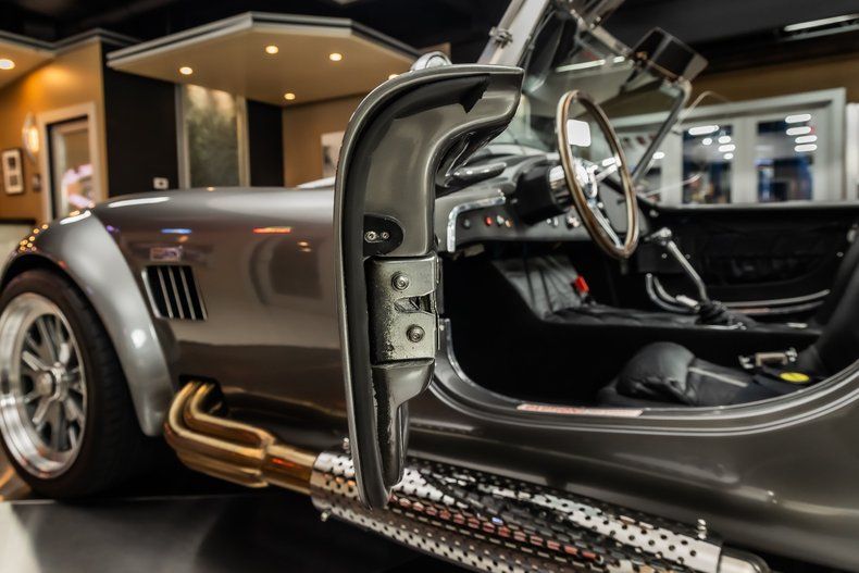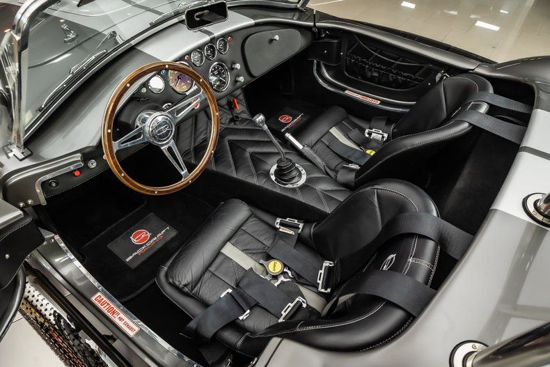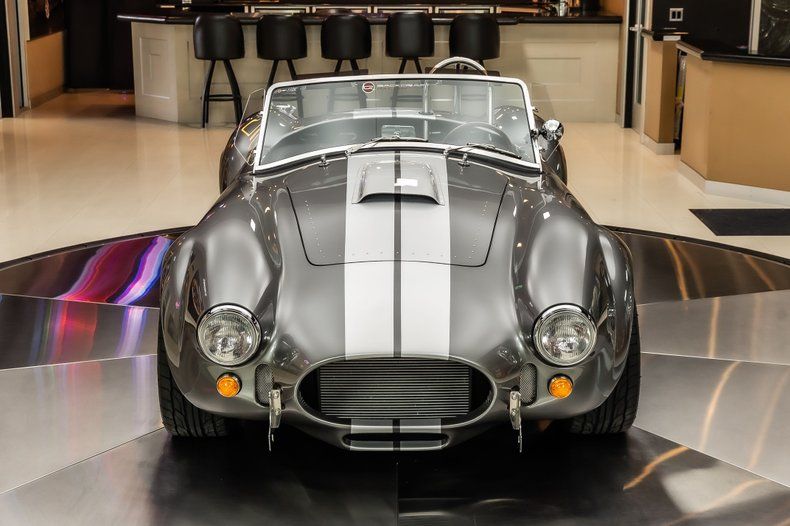 Check out this amazing Backdraft Racing 1965 Shelby Cobra! This Cobra is an RT4 build, and it has less than 5,100 Miles on it! Take a look at the Metallic Grey Exterior Paint with Silver Stripes, Fiberglass Body, 18' Knock - Off Style Black Wheels, Scooped Hood, Front Fender Vents, Driver side Chrome Roll Bar, Quick-Jack Bumpers, LeMans Style Fuel Fill and the Steel Side Pipes. Inside, this roadster is sporting a Black Leather Interior, Bucket Seating, 3 - Spoke Wood Steering Wheel, 4 Point Racing Harness, Big & Tall Package with ample room in the fully Carpeted Trunk for all of your car show essentials!