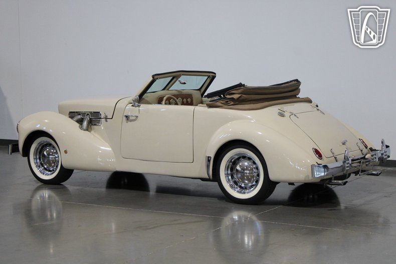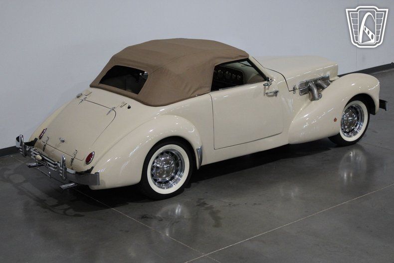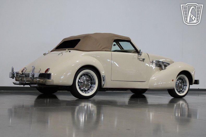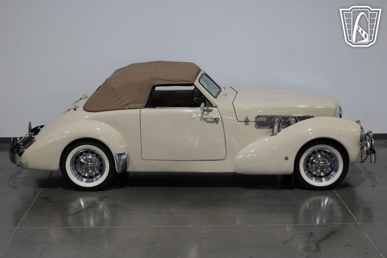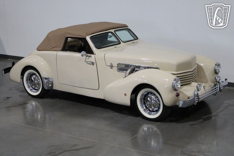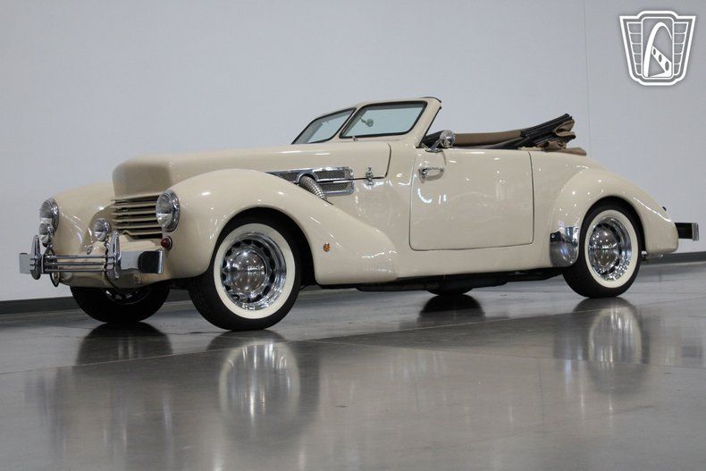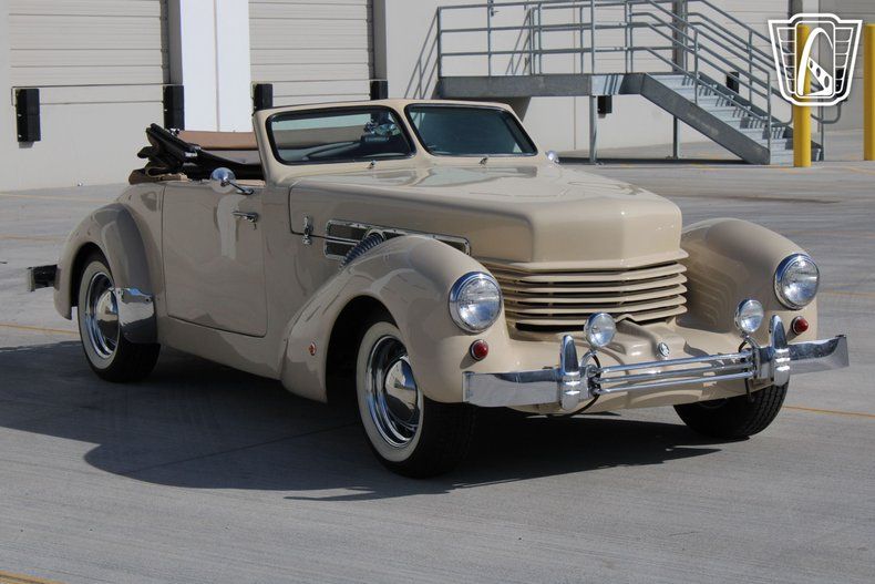 The 1937 Cord, often celebrated for its revolutionary ""coffin nose"" design, was a trailblazer in automotive history, and this replica captures that spirit beautifully. The sleek, aerodynamic lines of the original Cord were ahead of their time, and this convertible pays homage to that legacy with its graceful curves and commanding presence. Under the hood, a robust V8 engine paired with a smooth C-4 transmission delivers a driving experience that is both powerful and effortless, making every cruise a memorable one.