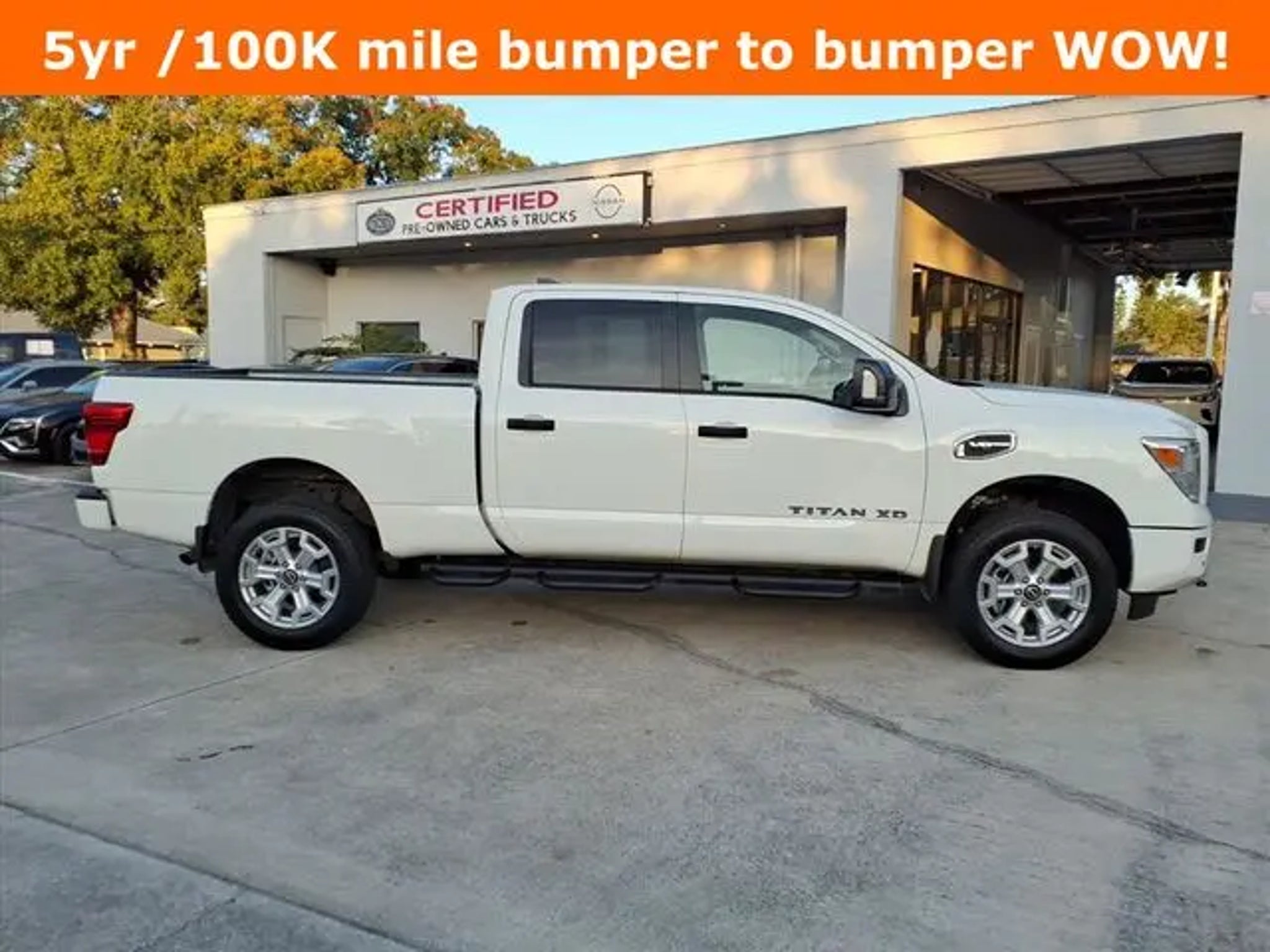 2024 Nissan Titan XD SV *** Glacier White *** Factory 5 year /100k miles bumper to bumper warranty -BEST in the business peace of mind!! ** Powerful V8 gas 5.6L / 400hp 9-Speed Automatic 4WD ** ton towing and hauling crew cab with longbed and tow package** HARD TO FIND Our Nissan, factory trained, Master technician perform a 167 point inspection and completed routine maintenance. Serving the central Florida area since 1971 and continuing a wonderful history with our new and long time customers, today. We are conveniently located in Titusville, FL just 35 minutes from Orlando Int'l airport, off I-95 exit 220. East 2.7M to US1, turn right on US1- to 1128 S Hopkins Ave Titusville, FL 32780. SV Convenience Package (120V/12V Outlets In Back Of Center Console, 2 Illuminated USB-A Ports In Back Of Center Console, 20 Painted Alloy Wheels, Auto Dual Zone HVAC, Auto-Dimming Rear-View Mirror, Dedicated Configurable Cell Phone Holder, Dual Illuminated Vanity Mirrors, Front & Rear Parking Sensors, Gooseneck Hitch, Heated Front Captain's Chairs, Intelligent Key System, Leather-Wrapped Steering Wheel, LED Mood Light, NissanConnect Services, Overhead Console w/Sunglass Holder, Power Sliding Rear Window w/Defogger, Proximity Activation, Rear HVAC Vents, and Wi-Fi Hotspot), 17 x 7.5 Styled Steel Wheels, 4-Wheel Disc Brakes, 4.083 Axle Ratio, 6 Speakers, ABS brakes, Air Conditioning, AM/FM radio: SiriusXM, Auto High-beam Headlights, Blind Spot Warning, Brake assist, Bumpers: chrome, Carpet Floor Mats, Cloth Seat Trim, Driver door bin, Dual front impact airbags, Dual front side impact airbags, Electronic Stability Control, Front anti-roll bar, Front Center Armrest w/Storage, Front Manual Split Bench Seat (40/20/40), Front reading lights, Front wheel independent suspension, Fully automatic headlights, Heated door mirrors, Illuminated entry, Knee airbag, Loop Side Steps, Low tire pressure warning, NissanConnect featuring Apple CarPlay and Android Auto, Occupant sensing airbag, Outside temperature display, Overhead airbag, Overhead console, Panic alarm, Passenger door bin, Passenger vanity mirror, Power door mirrors, Power steering, Power windows, Radio data system, Radio: NissanConnect AM/FM, Rear anti-roll bar, Rear Parking Sensors, Rear seat center armrest, Rear step bumper, Rear window defroster, Remote keyless entry, Security system, Speed control, Speed-sensing steering, Speed-Sensitive Wipers, Splash Guards, Split folding rear seat, Steering wheel mounted audio controls, Tachometer, Telescoping steering wheel, Tilt steering wheel, Traction control, Turn signal indicator mirrors, Variably intermittent wipers, and Voltmeter.