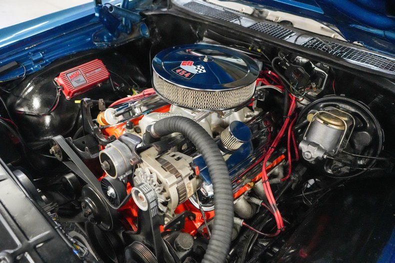 This 1970 Chevrolet Chevelle is a bold big-block street machine powered by a 454 Big Block Chevy V8 paired with a TH350 automatic transmission and 12-bolt rear end with 3.55 gears. It features power steering, power brakes, and upgraded Wilwood 4-wheel disc brakes for confident stopping. The black vinyl interior pairs perfectly with the blue exterior paint and white stripes. It rides on 15" GM Magnum 500 wheels with Cooper Cobra tires. Performance parts include an Edelbrock Performer 2.0 intake, Holley carb, MSD ignition system, aluminum radiator, dual electric fans, headers, Pypes mufflers, and rear adjustable coil-overs. THIS VEHICLE QUALIFIES FOR FREE SHIPPING AND A WARRANTY!!